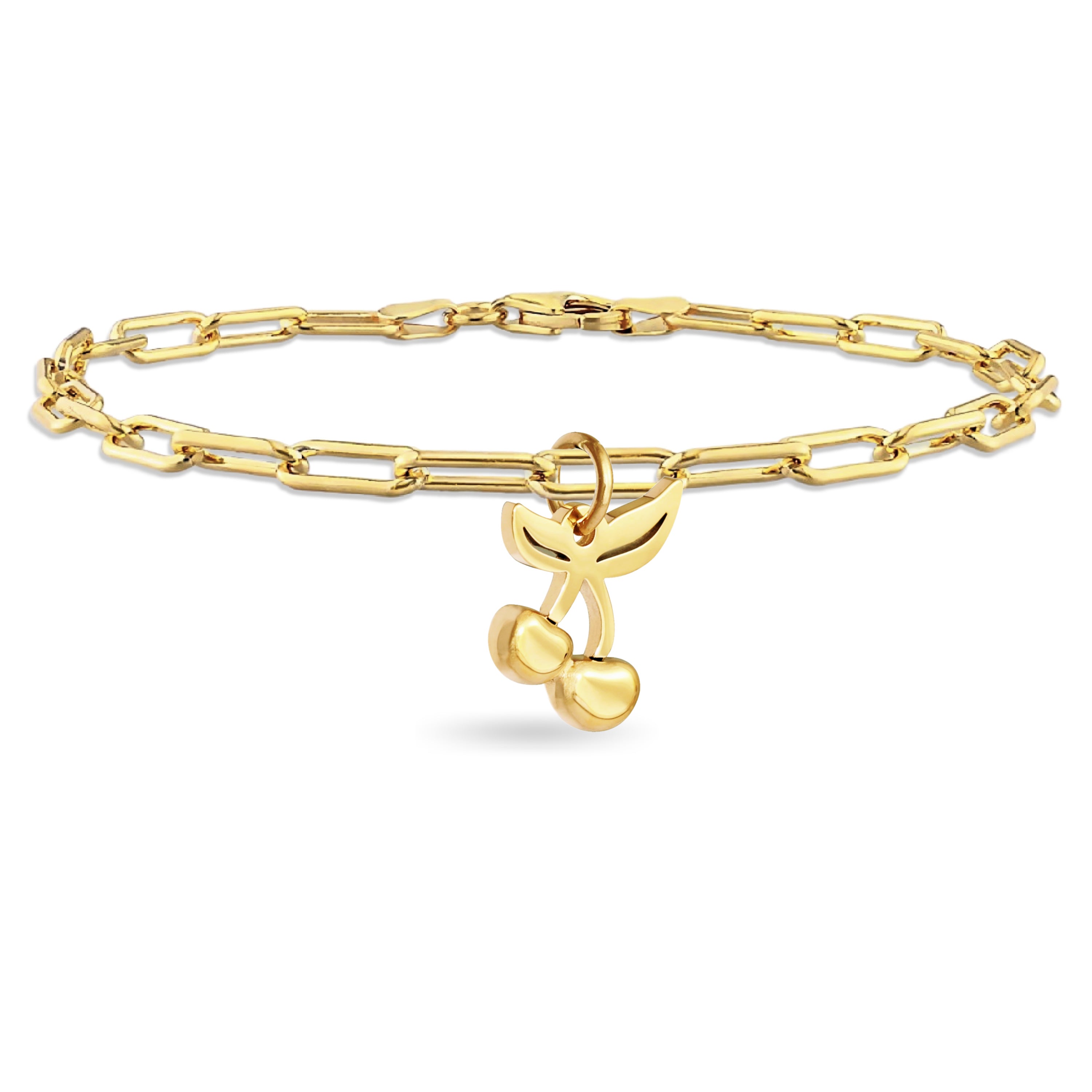 Cherry Charm Paperclip Bracelet – 18K Gold Stainless Steel