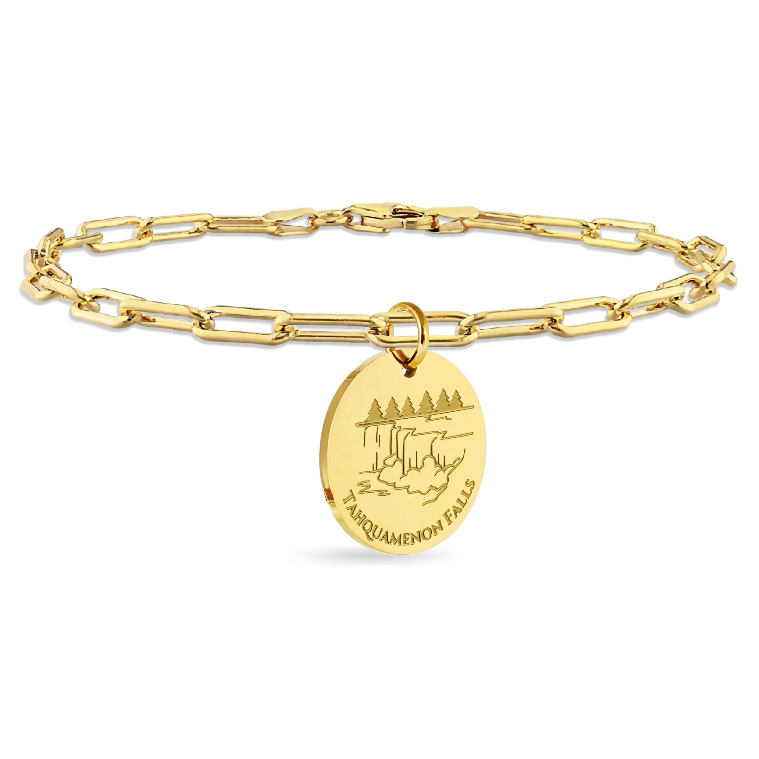 Tahquamenon Falls Charm Bracelet – 18K Gold Paperclip Chain