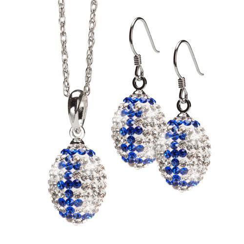 Clear and Blue Pendant Necklace and Football Earring Set