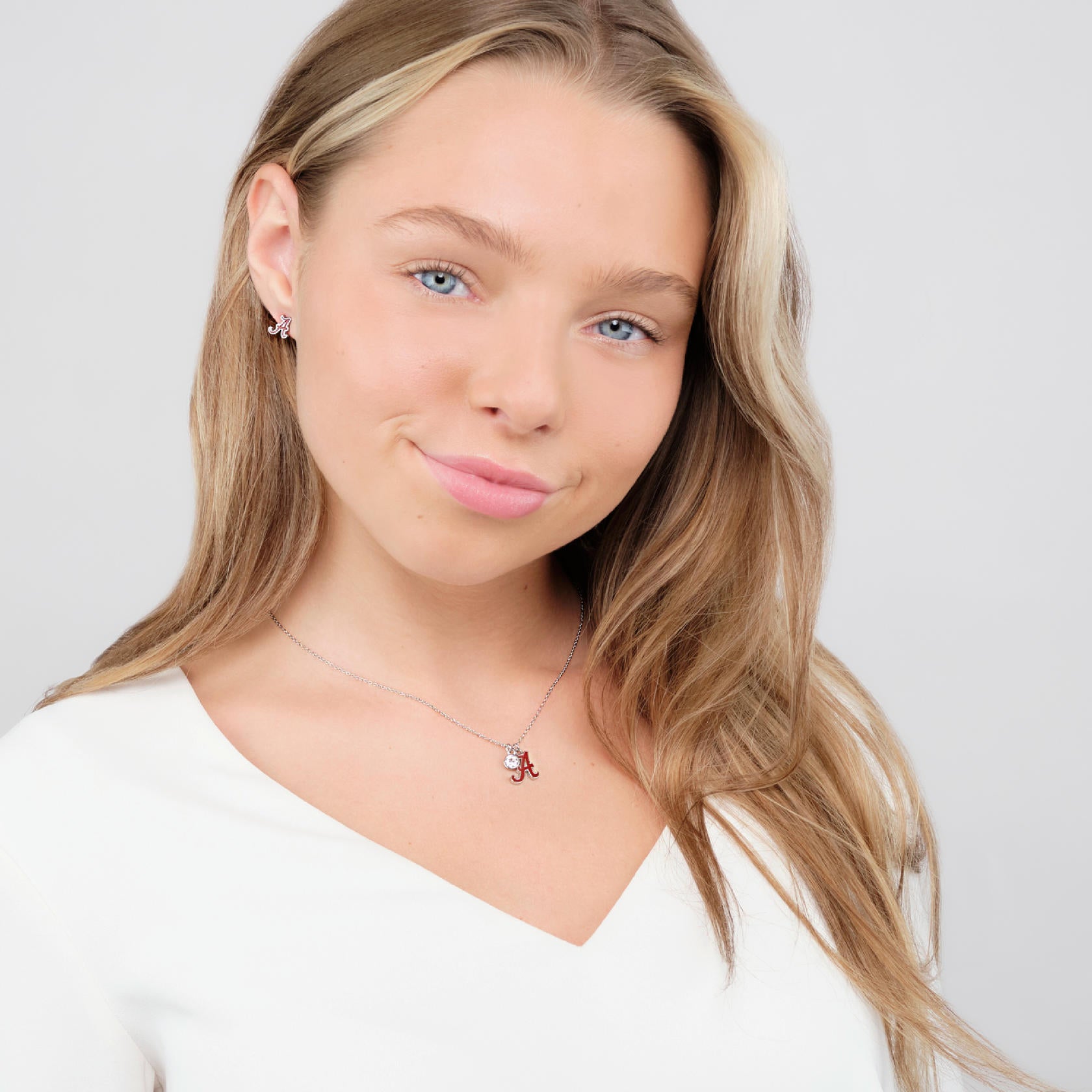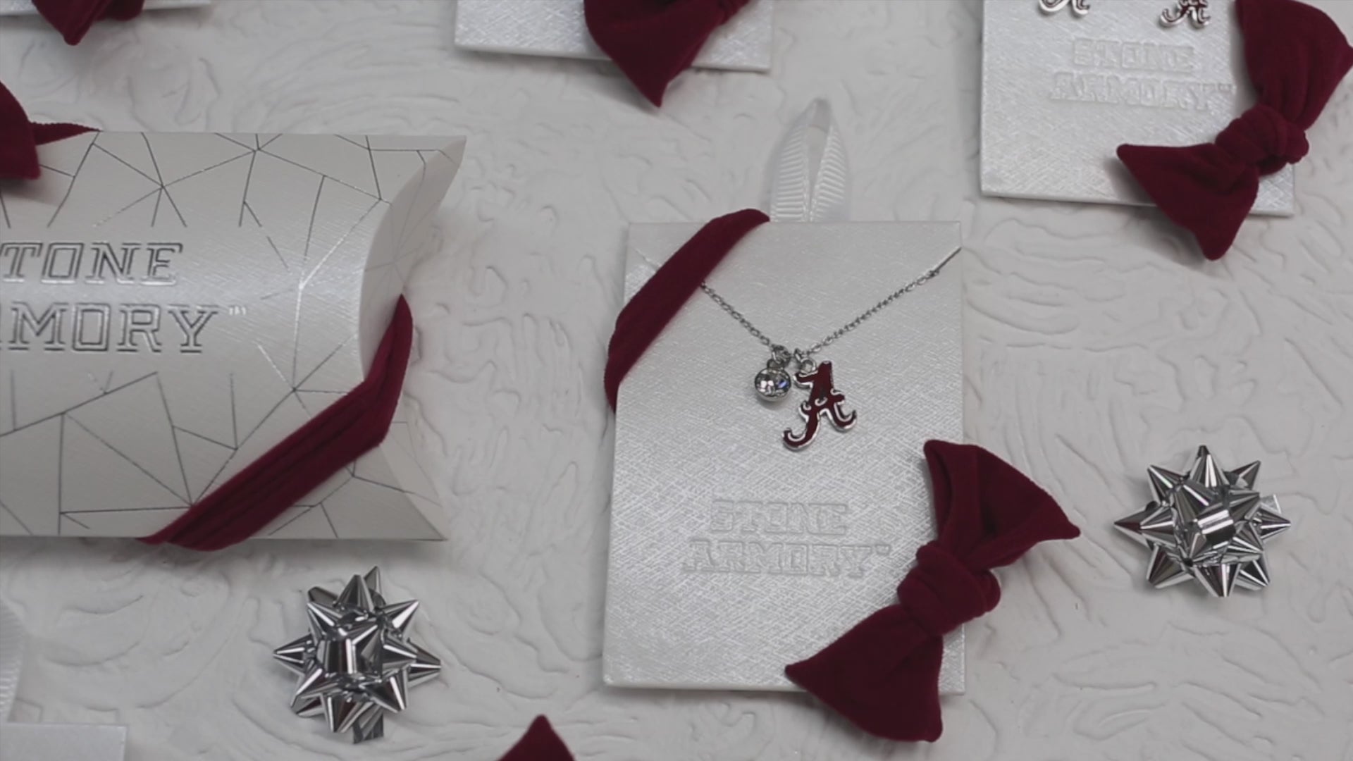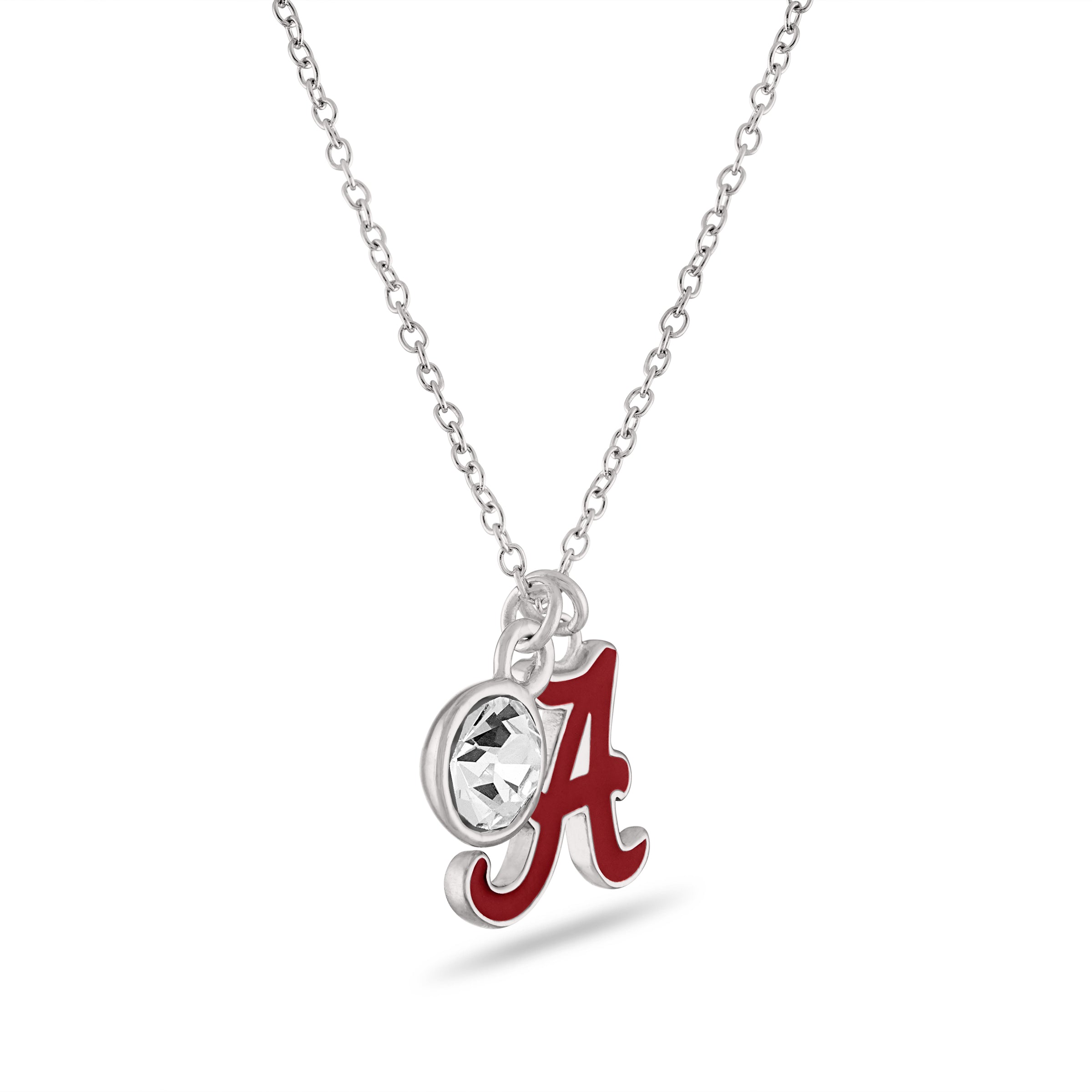 - Treasure Your Alabama Crimson Tide Spirit - This University of Alabama crystal necklace from Stone Armory is full of Crimson Tide Pride! Featuring a Script A pendant charm accented by a sparkling clear crystal, this Alabama necklace is just as unique as you. Roll Tide!