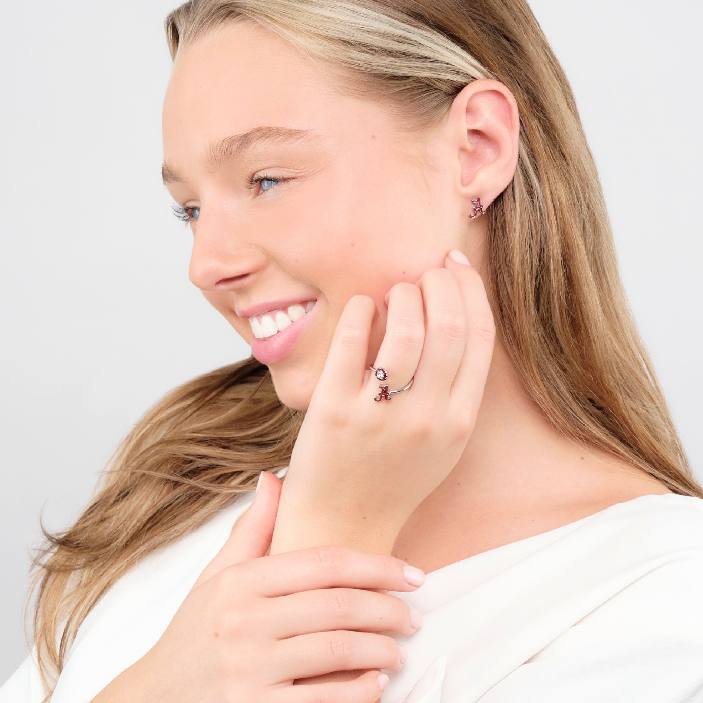 Stone Armory's Alabama jewelry set is finally here! Gear up for the game with our beautifully designed and combined University of Alabama ring and earring set, featuring crimson A stud earrings and a sparkling crimson A crystal wrap ring. Wear it to your next tailgate or around town to show off your Alabama Crimson Tide pride! This UA jewelry set would also make the perfect Alabama gift for your favorite Crimson Tide fan. Stone Armory's University of Alabama jewelry is made of stainless steel and carefully crafted, making this NCAA Alabama ring and earring set the perfect gift to celebrate Alabama graduation, birthdays, Mother's Day, the first day of school, the first game, or for everyday fan wear. Thank you for supporting our small business!
