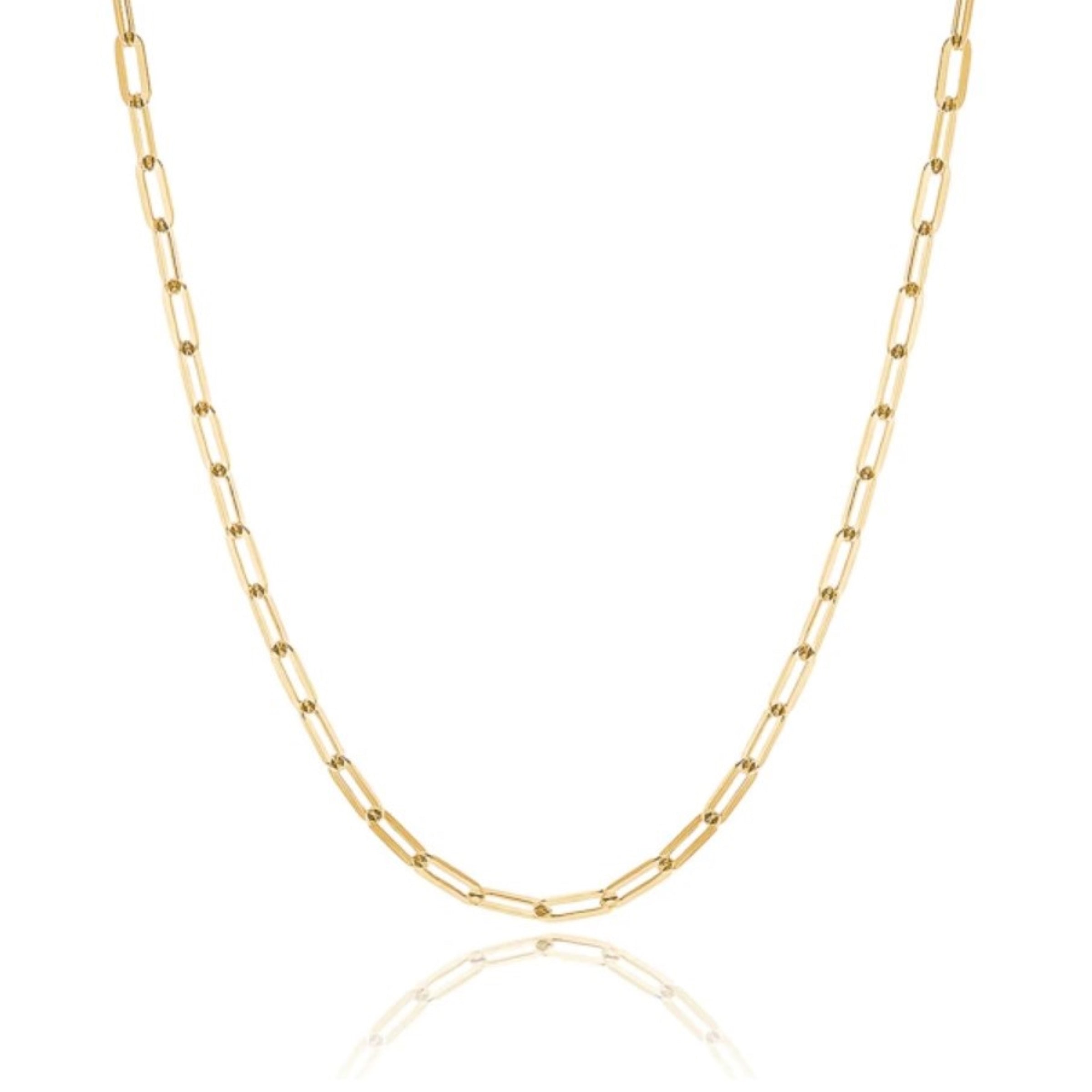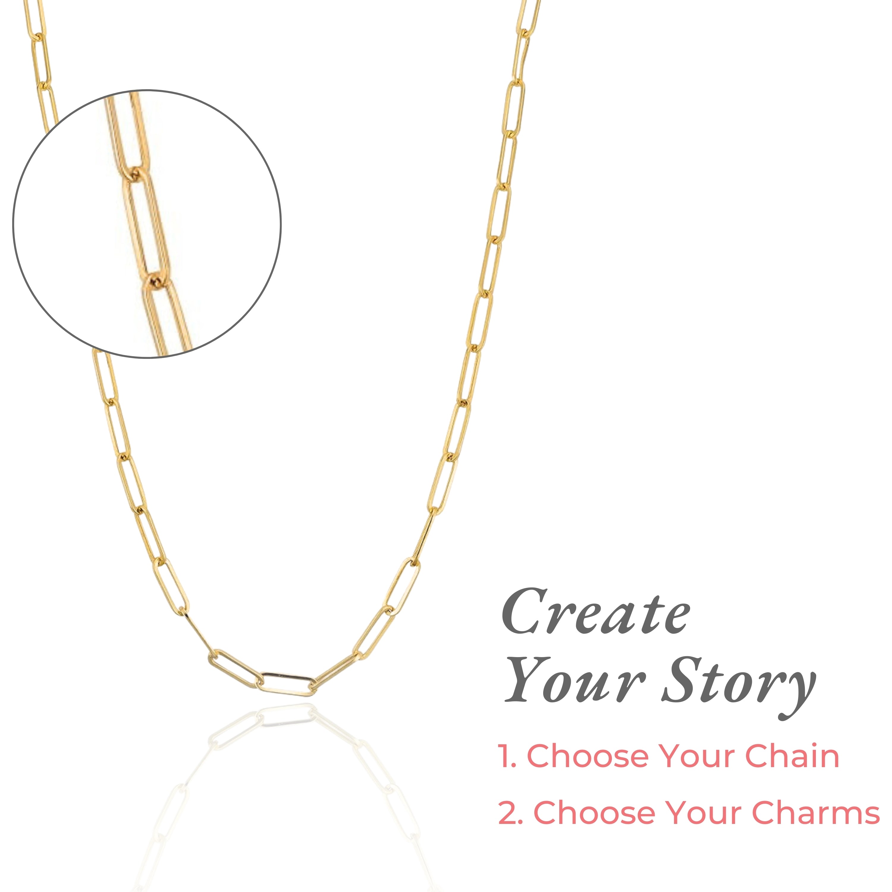 A gleaming 18K gold dipped paperclip style chain--shop our Charmed Treasures collection to add your own unique charm stack! This hypoallergenic necklace is stainless steel coated with 18K gold and can adjust from 16-20 inches.