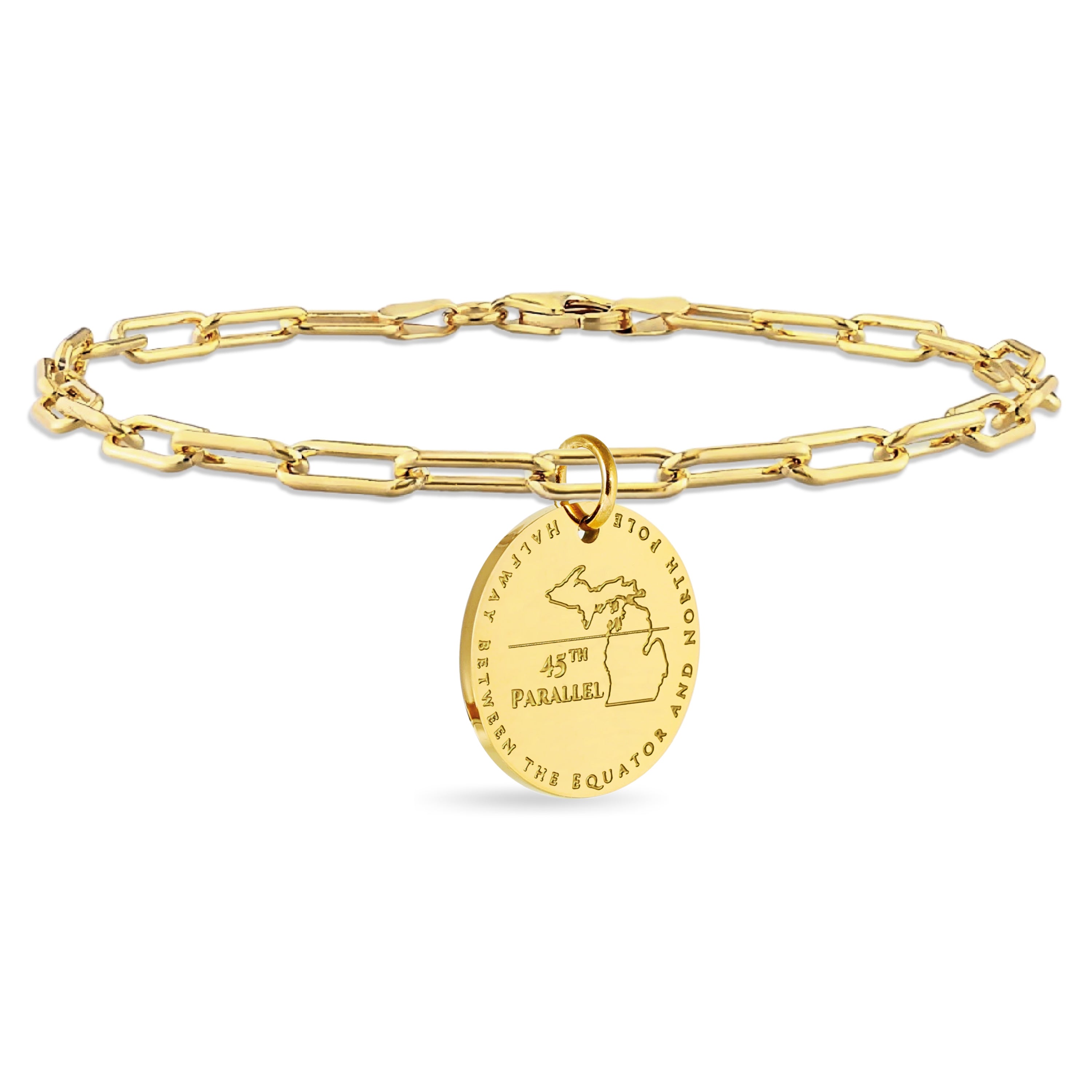 45th Parallel Michigan Charm Bracelet – 18K Gold Paperclip Chain