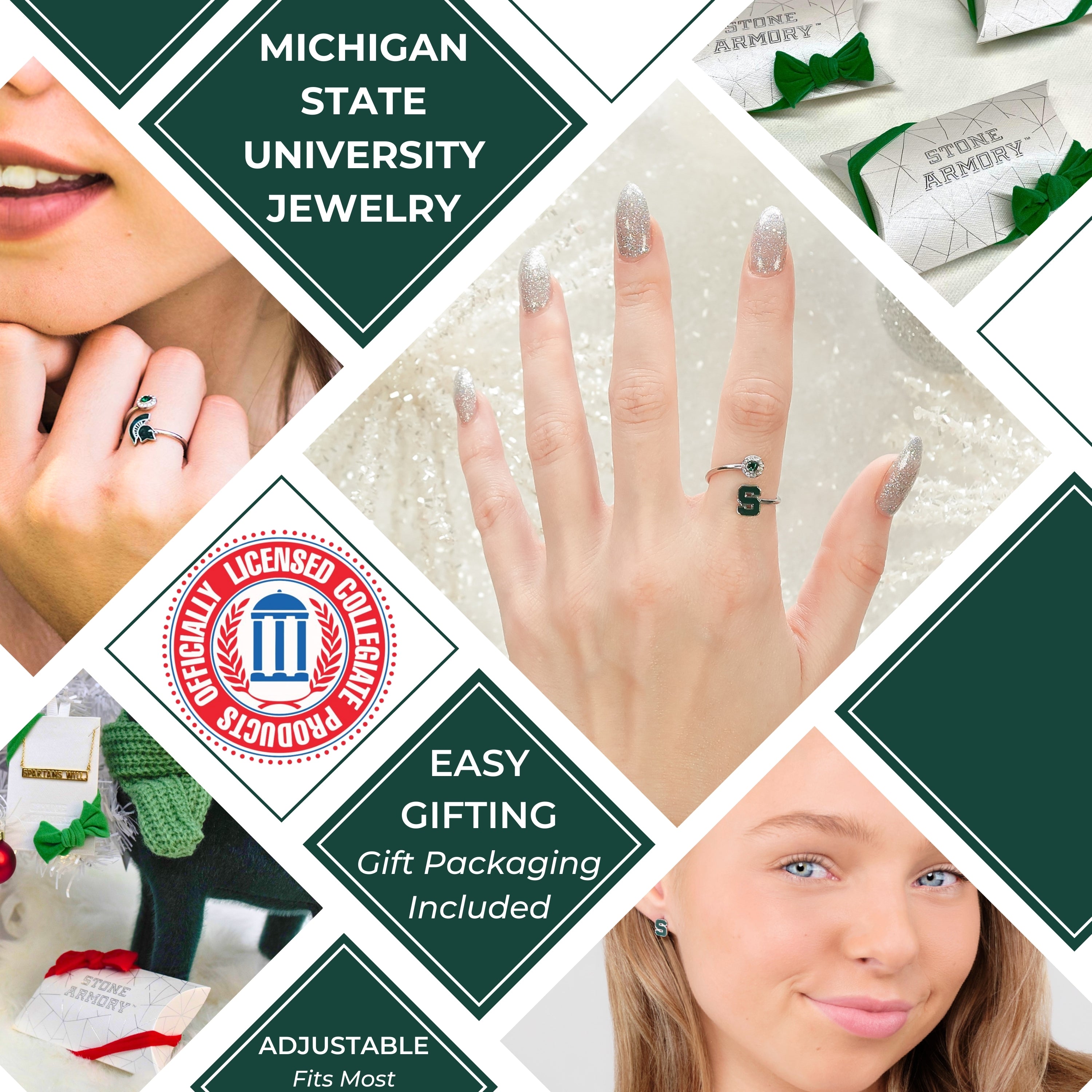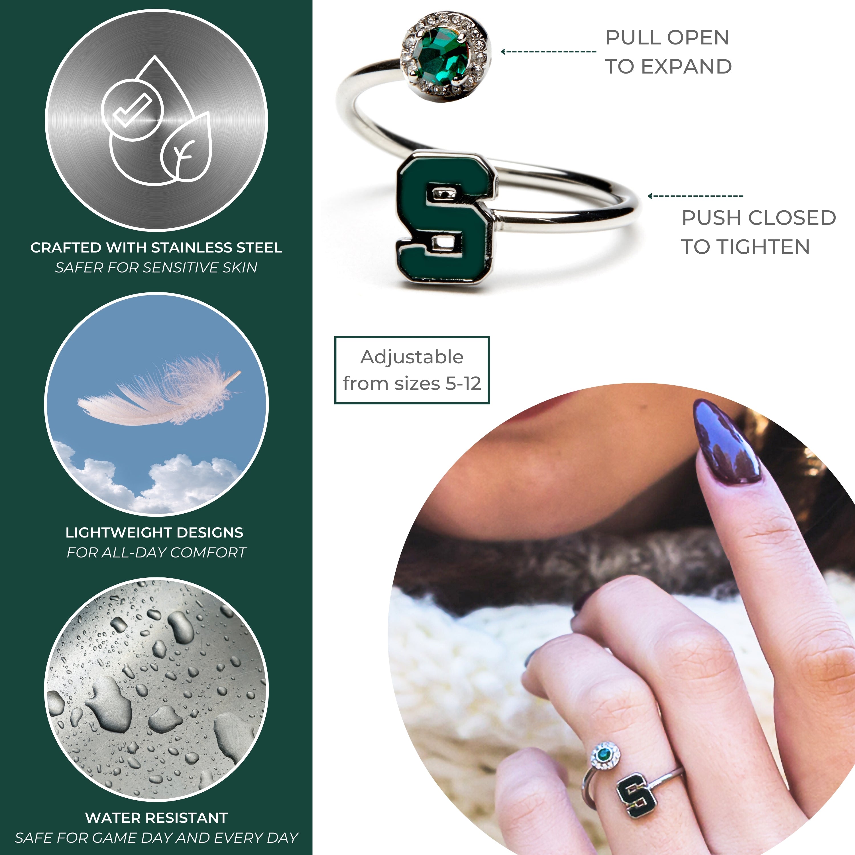 💚THE PERFECT Michigan State University GIFT: This MSU Spartans ring is adjustable in size and will fit most, making it the perfect womens gift for yourself, Michigan State fans, graduates, students, moms, sisters, daughters and Michigan State alumni. Great gift for Mother's Day, Christmas, birthdays and graduation. Go Green!