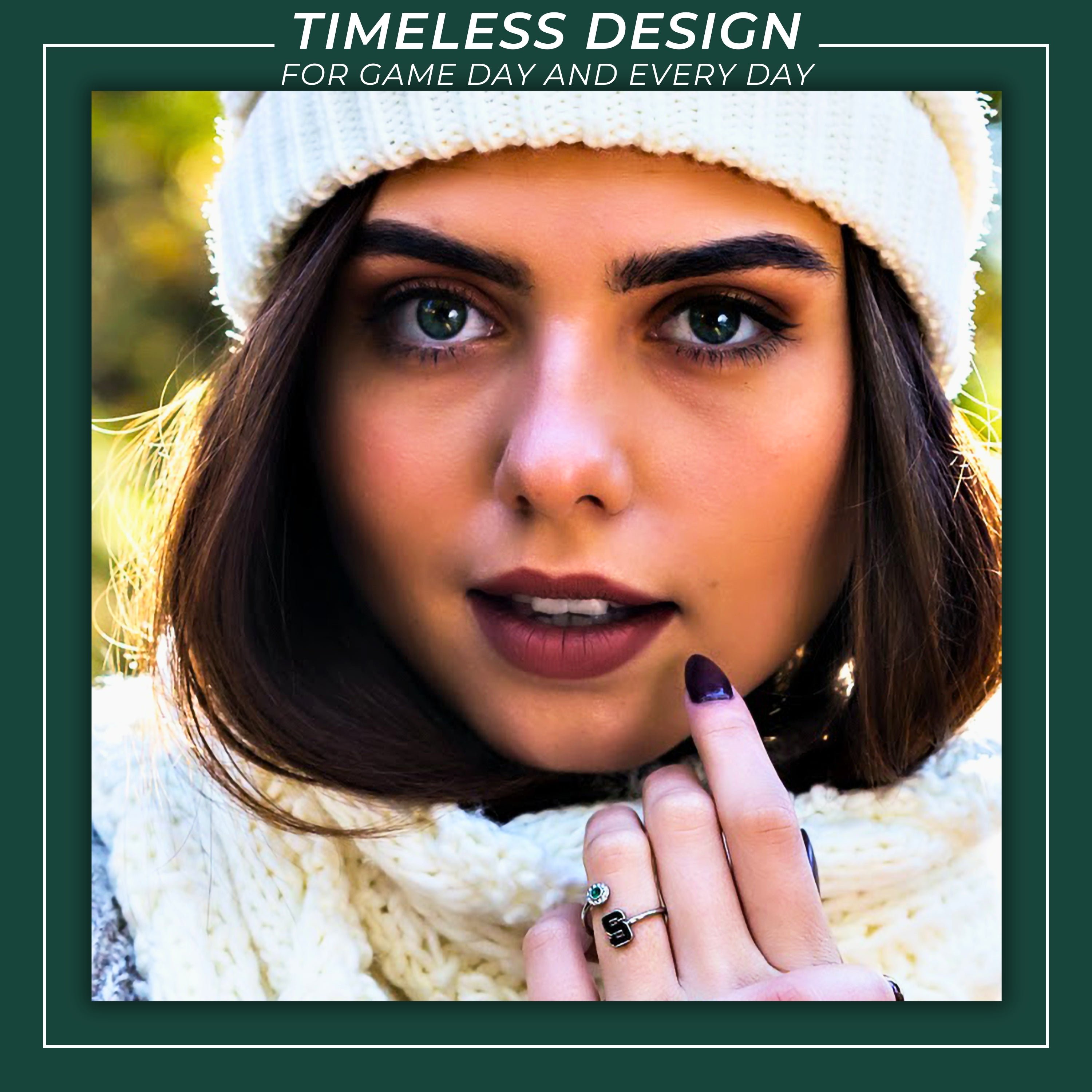 💚TREASURE YOUR Michigan State Spartans SPIRIT: This Stone Armory Michigan State University ring is officially licensed. A classic Michigan State spartan ring with green and clear crystals, to show off your MSU Spartans pride.