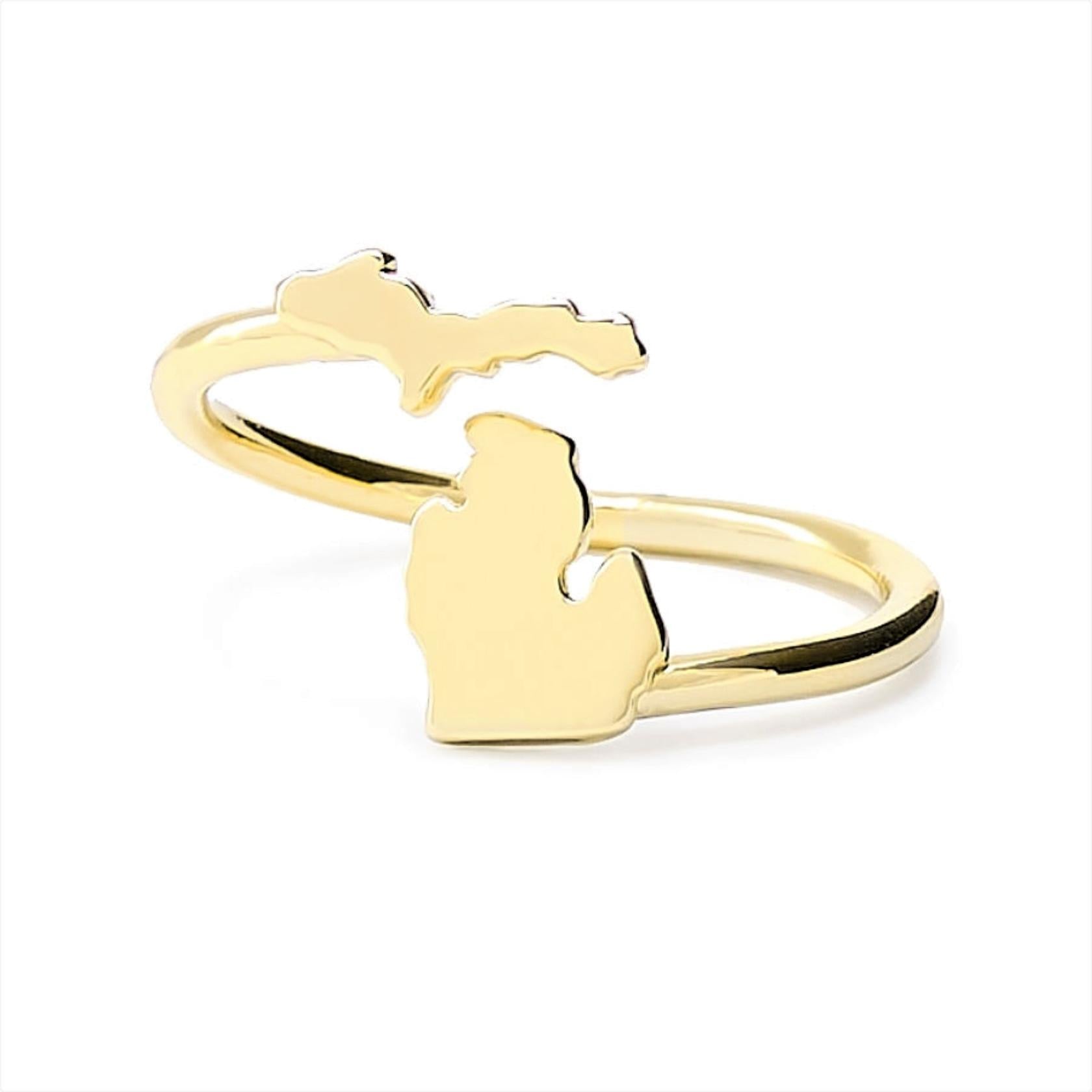 🌊YOUR PERFECT FIT: This gold plated Michigan ring is adjustable, fitting sizes 4.5-12 - simply expand or contract to find your perfect fit! Add this classic Michigan ring to show off your beloved Mitten State.
