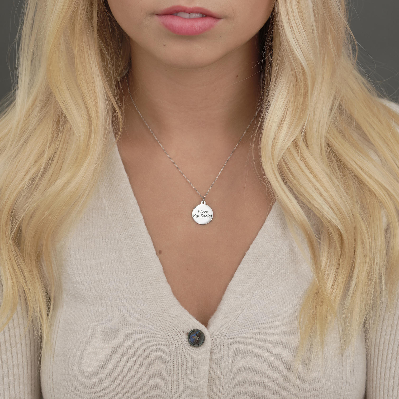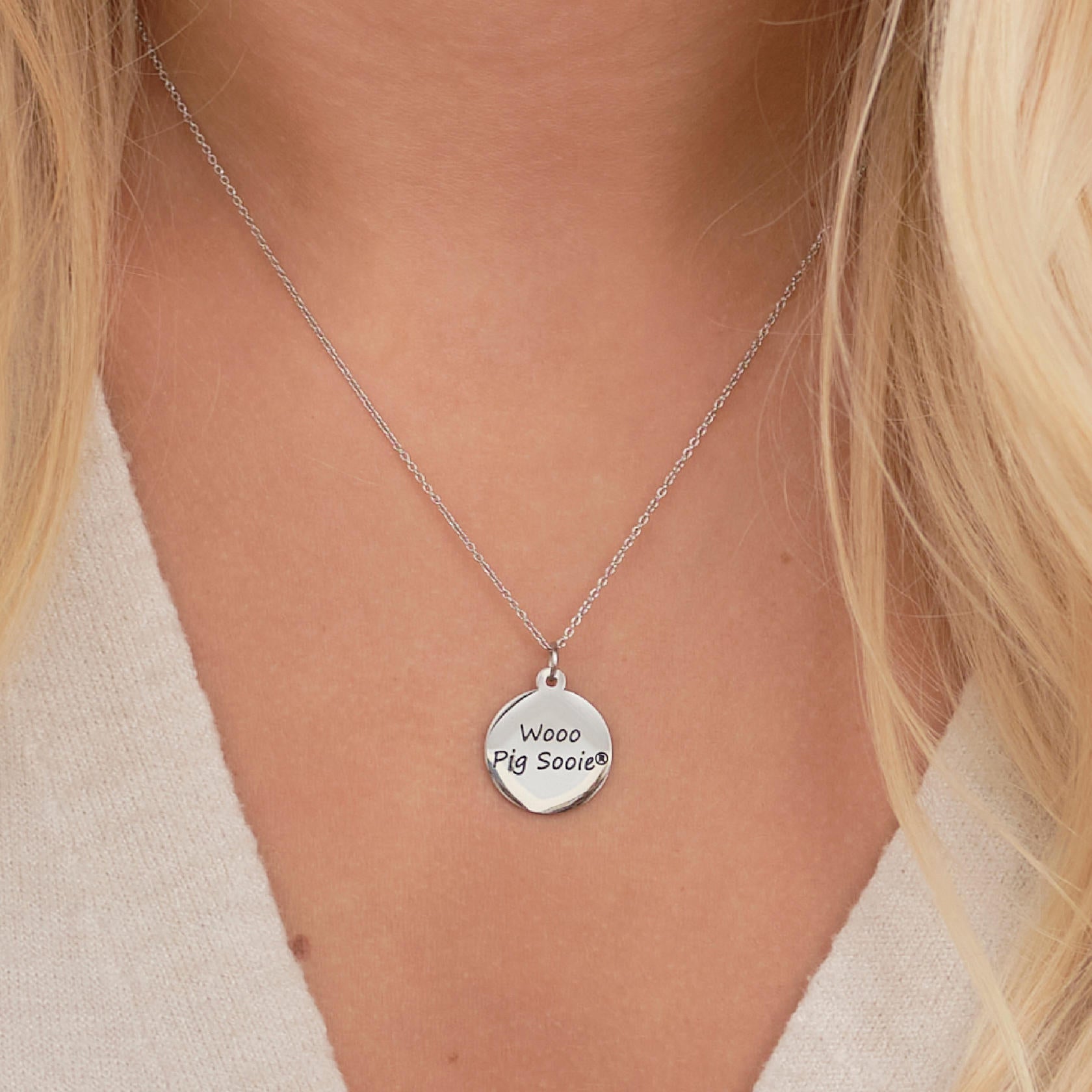 Stone Armory's Arkansas Spirit necklace is finally here! Gear up for the game with our beautifully designed University of Arkansas necklace, featuring a stainless steel coin pendant engraved with 'Wooo Pig Sooie'. Wear it to the next tailgate or around town to show off your Arkansas Razorback pride. This adjustable U of A necklace would also make the perfect Arkansas gift for your favorite Arkansas Razorbacks fan! Stone Armory's University of Arkansas jewelry is made of stainless steel and is adjustable in size, making this NCAA Arkansas necklace the perfect gift to celebrate Arkansas graduation, birthdays, Mother's Day, first day of school, the first game, or for everyday fan wear. Thank you for supporting our small business!