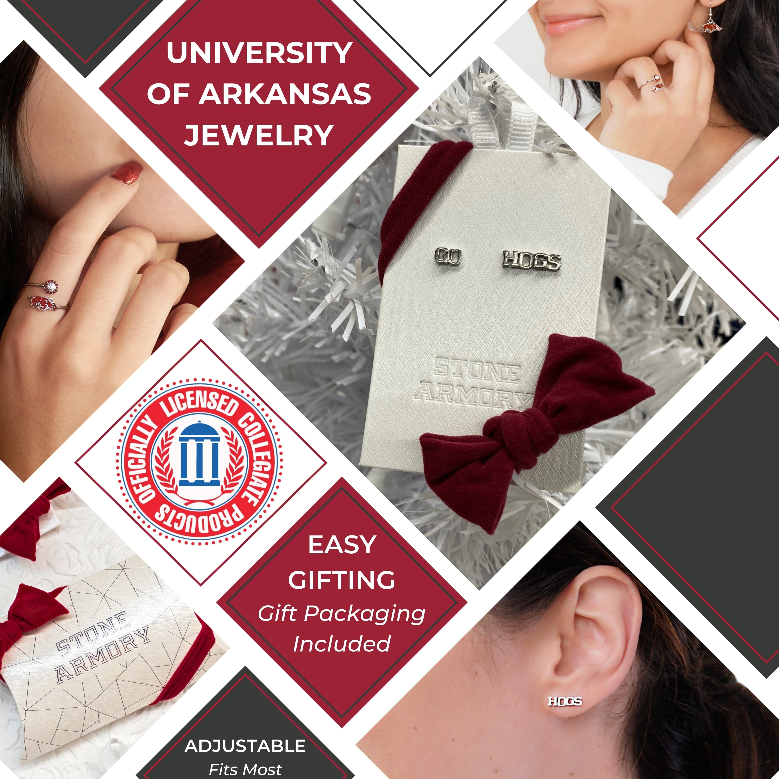 SUPPORT small business: Stone Armory is a small family business dedicated to bringing the passion of everyday life, the love for our America, its people, its beauty and its culture to jewelry pieces. Our goal is to bring life's joys into jewelry by designing pieces that capture the heart, soul, and spirit of memories made together. As avid college football fans, we are proud to present our Officially Licensed University of Arkansas jewelry line.