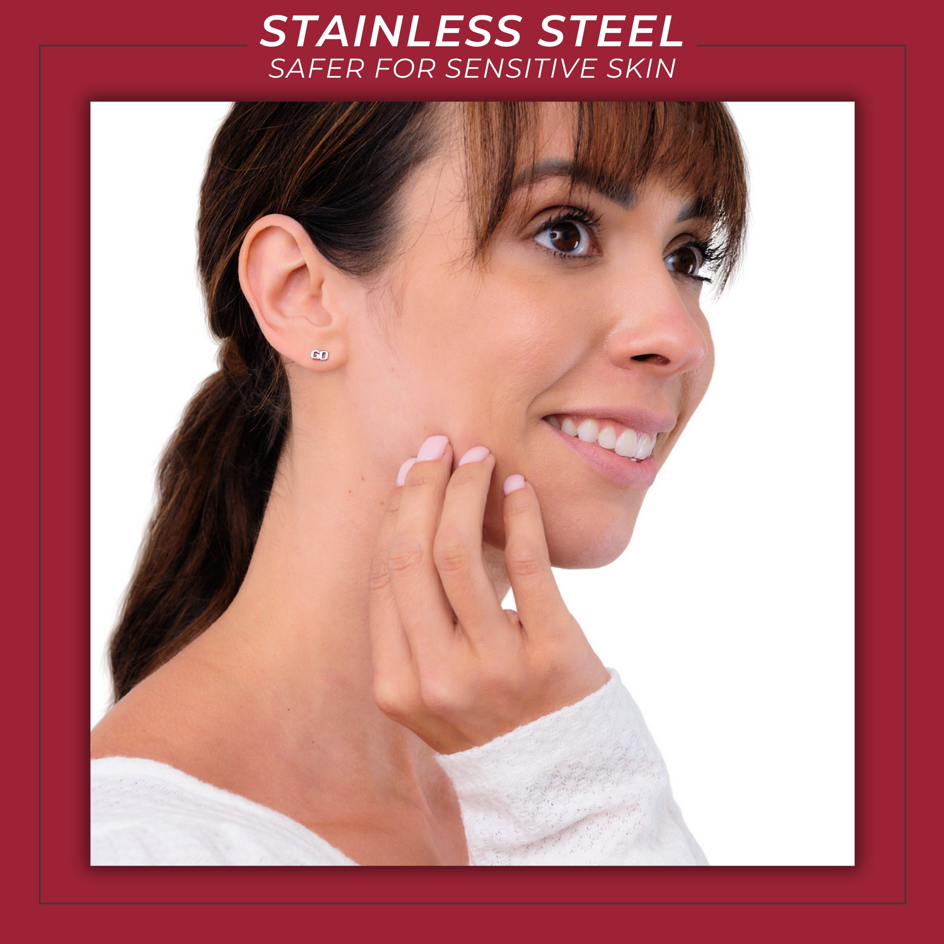 Stone Armory's Arkansas GO HOGS stainless steel stud earrings are here! Gear up for game day with our beautifully designed sports fan earrings. Wear them to your next tailgate or around town to show off your Razorbacks pride. These hypoallergenic earrings would also make the perfect Arkansas gifts for your favorite Razorbacks fan! Stone Armory's womens earrings are made of stainless steel and carefully designed, making these NCAA Arkansas small stud earrings the perfect Razorback gifts to celebrate Arkansas graduation, birthdays, Mother's Day, first day of school, the first Arkansas Razorback football game, or for everyday fan jewelry wear. Thank you for supporting our small business!