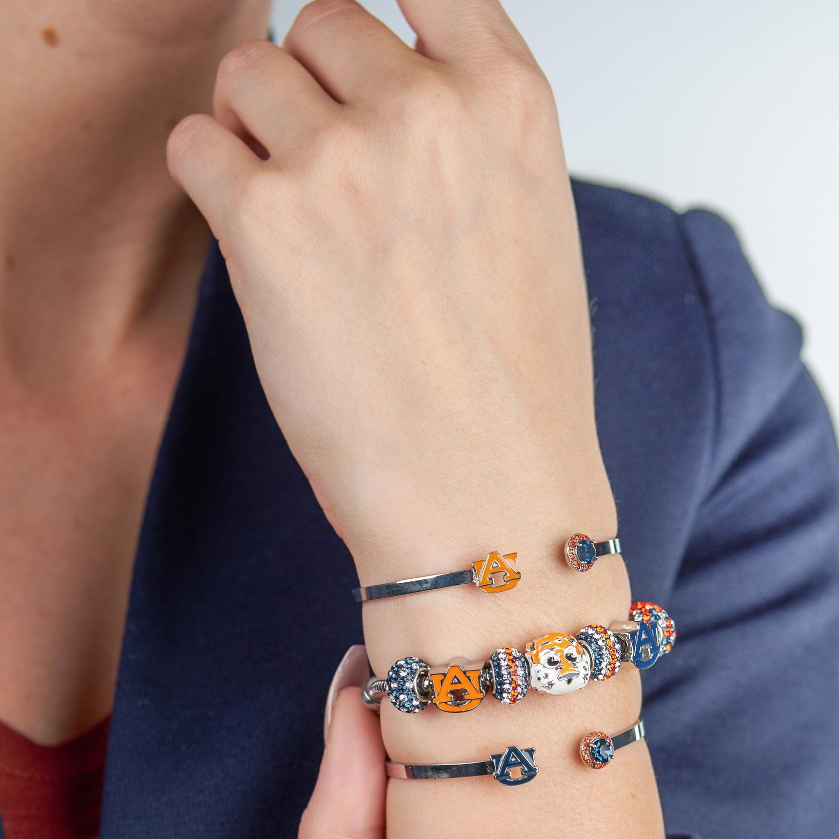 š§”TREASURE YOUR Auburn Tigers SPIRIT: This Auburn University crystal bangle from Stone Armory is officially licensed. Showcase your Tiger spirit with this classic Auburn design, featuring a blue AU Logo and sparkling blue and orange crystal accents.