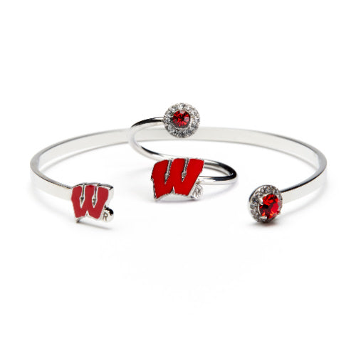 Gear up for the Wisconsin Badgers game! This two piece set includes a Wisconsin bangle bracelet and an Austrian crystal ring. Both pieces are made of high quality stainless steel and adjustable to fit most wrist and finger sizes. Layer them with your other Badgers jewelry for a fun and classy look!
