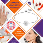 Elevate your style with our Clemson University Tigers bracelet, exquisitely crafted with stainless steel and meticulously designed to offer Clemson Tigers elegance and durability. This stunning Clemson bracelet is the perfect accessory for any occasion, blending timeless style with modern sophistication. Our Tigers Jewelry offers an adjustable design, ensuring a perfect fit for everyone and allowing you to choose a snug or loose fit according to your preference. This Clemson bracelet is also great for stacking and layering! Made from high-quality stainless steel, this bracelet is safe for sensitive skin, offering visual luxury without any irritation. Each Tigers bracelet is designed to maintain its shine with long-lasting beauty and durability. The sleek and elegant design makes it a versatile piece that complements any outfit and especially Clemson Tigers Apparel, from casual to formal wear to Clemson Tigers Football Gamedays, showcase your Clemson Tigers pride. Featuring a secure pull chain closure, you can wear your bracelet with confidence, knowing it will stay in place all day long. This adjustable bolo chain bracelet captures the spirit and tradition of The Clemson University with the iconic Tiger Paw design. Ready to gift, our Clemson jewelry comes in beautiful, elegant packaging and a bow, making perfect Tigers Gifts for women, Clemson Birthday Gifts, Graduation Gifts, Clemson Alumni Gifts, back-to-school, or anyone that is a Clemson University fan. Enjoy the ease of maintaining your bracelet with simple cleaning, ensuring it remains radiant and beautiful for years to come. With its classic design, this Clemson bracelet transcends trends, offering a timeless piece that you'll cherish forever. Go Tigers!