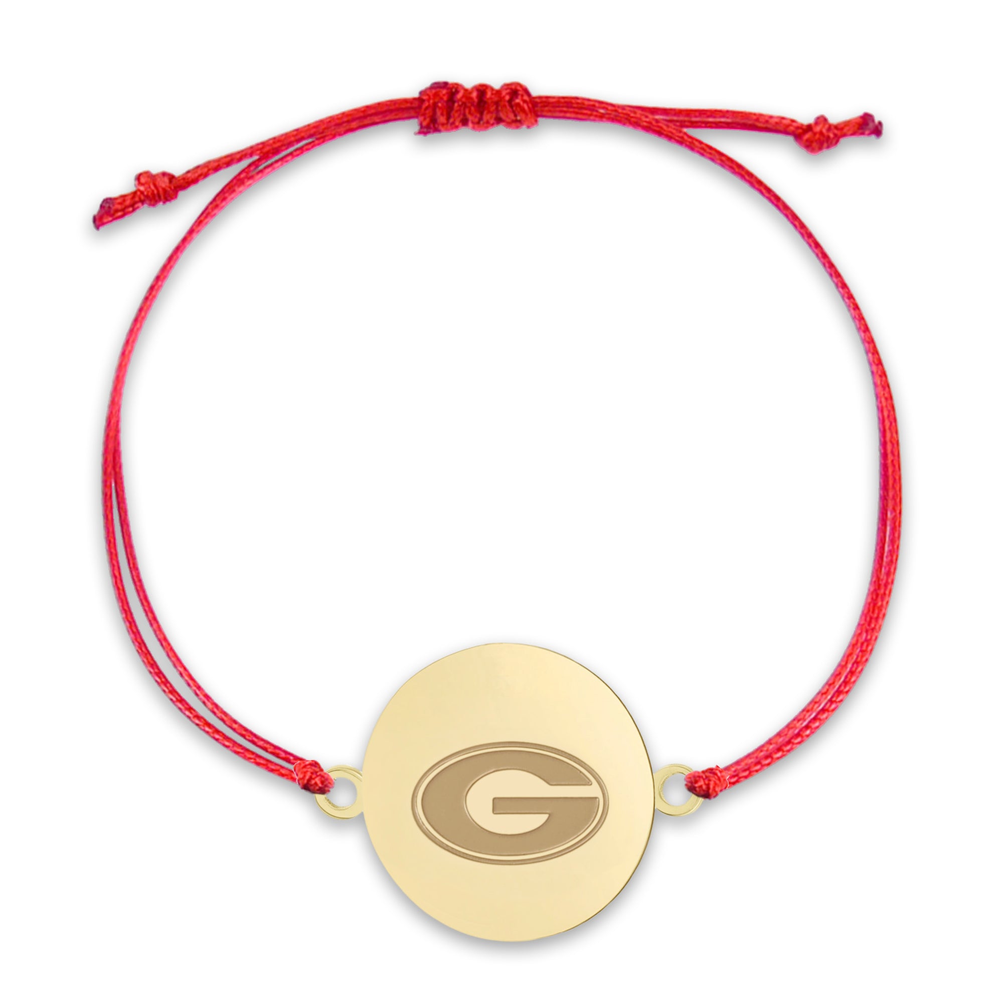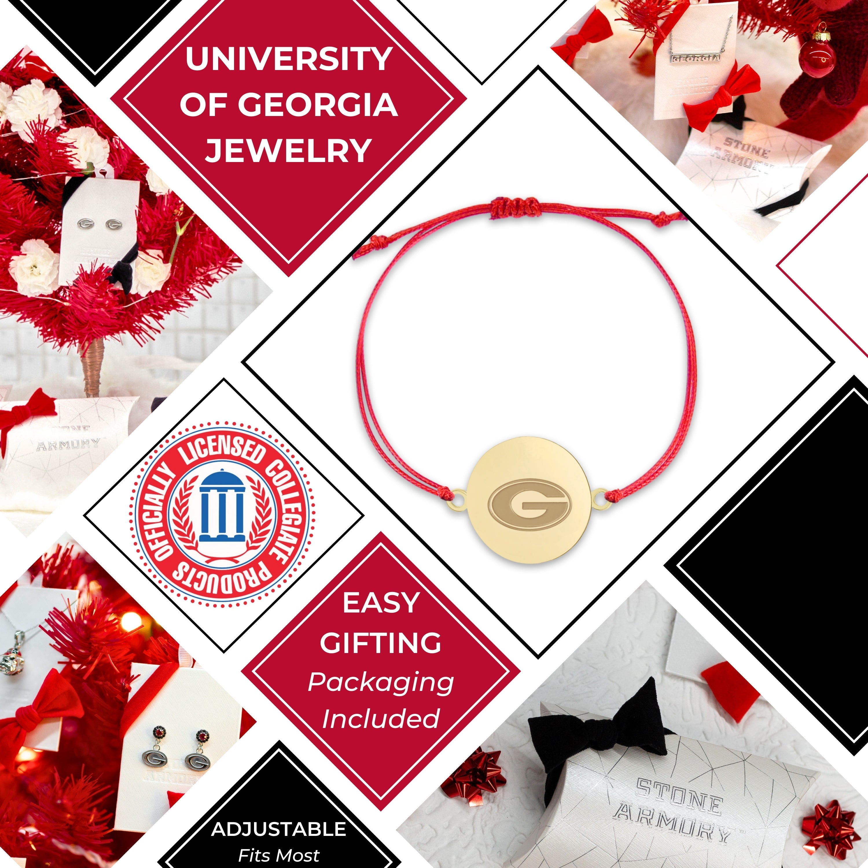 Sport your Bulldog Spirit in Style with this Exquisitely Crafted Georgia Bracelet : Treasure your Georgia Bulldog Spirit with this Georgia adjustable cord bracelet for women and men; this University of Georgia bracelet features a 18K gold plated stainless steel G logo coin on a red cord bracelet