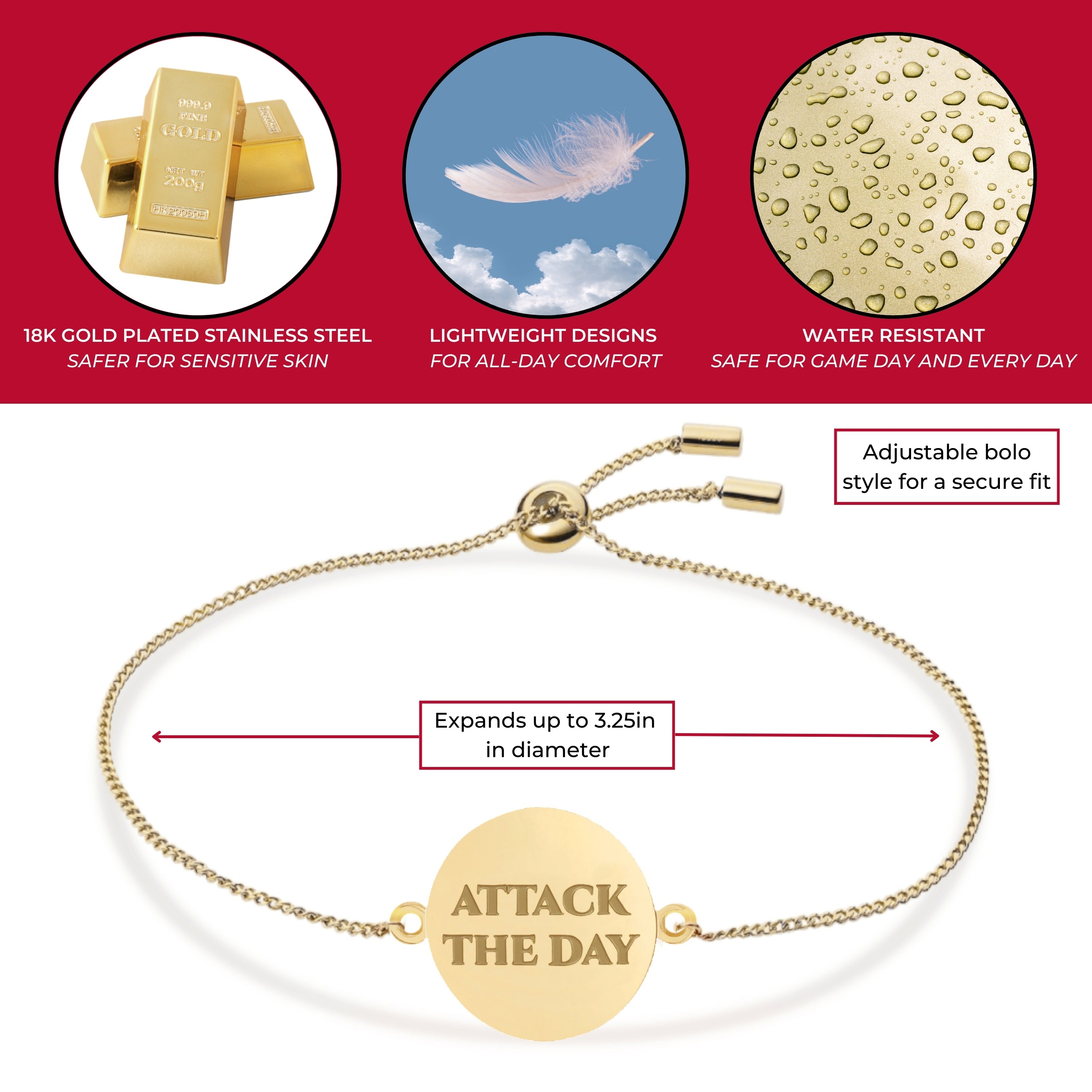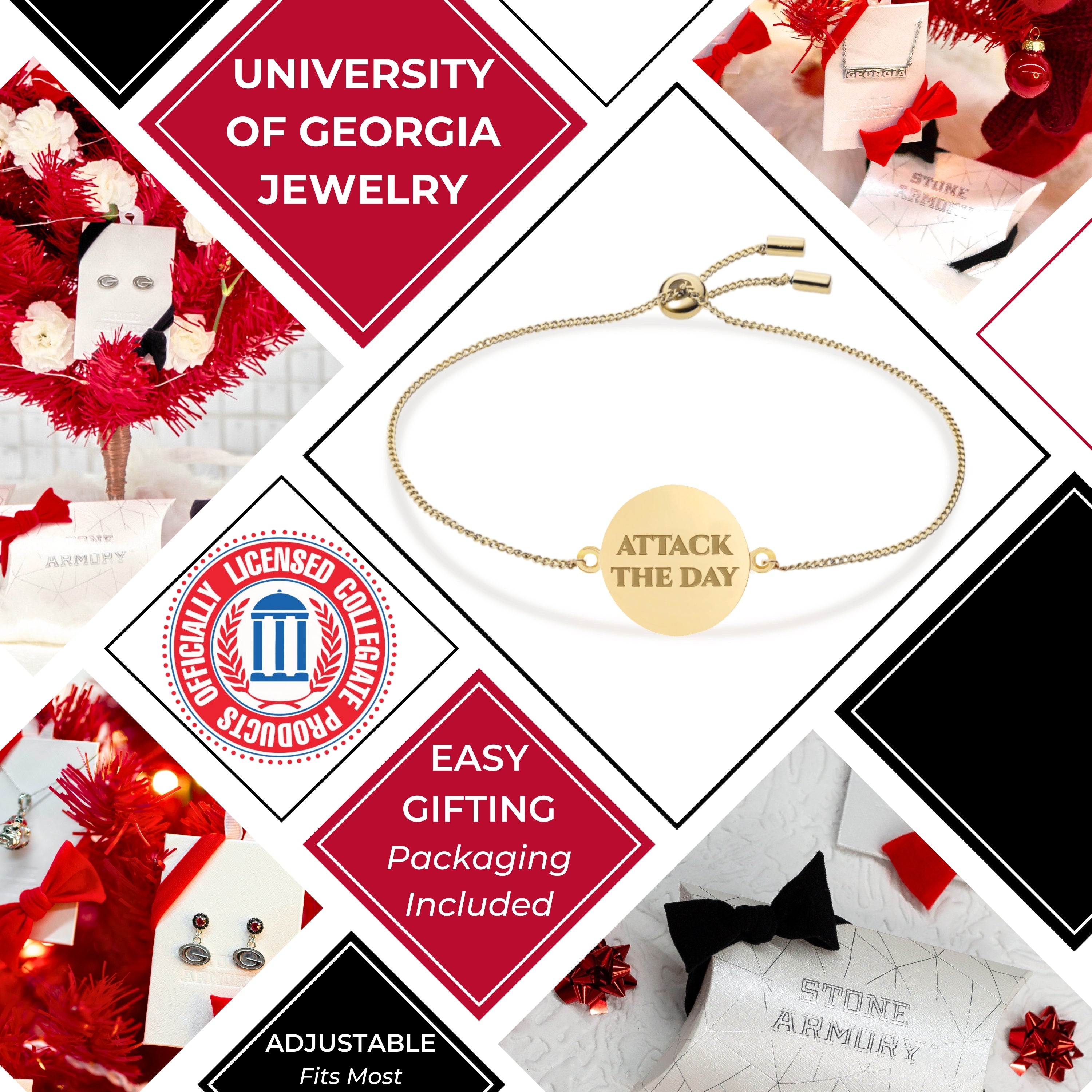 Sport your Bulldog Spirit in Style with this Exquisitely Crafted Georgia Bracelet : Treasure your Georgia Bulldog Spirit with this Georgia adjustable bolo chain bracelet for women and men; this University of Georgia bracelet features an engraved 'Attack the Day' charm design on an 18K gold plated stainless steel bracelet