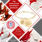 Sport your Buckeye Spirit in Style with this Exquisitely Crafted Ohio State Bracelet : Treasure your Ohio State Buckeyes Spirit with our Ohio State Gold Charm Bracelet for women and men; this Ohio State University bracelet features engraved Block O and How Firm Thy Friendship charms on a gold paperclip chain bracelet