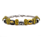 Gear up for the game with this beautifully handcrafted bead charm bracelet! Includes five stainless steel Iowa bead charms and eight Austrian crystal beads in yellow and black.