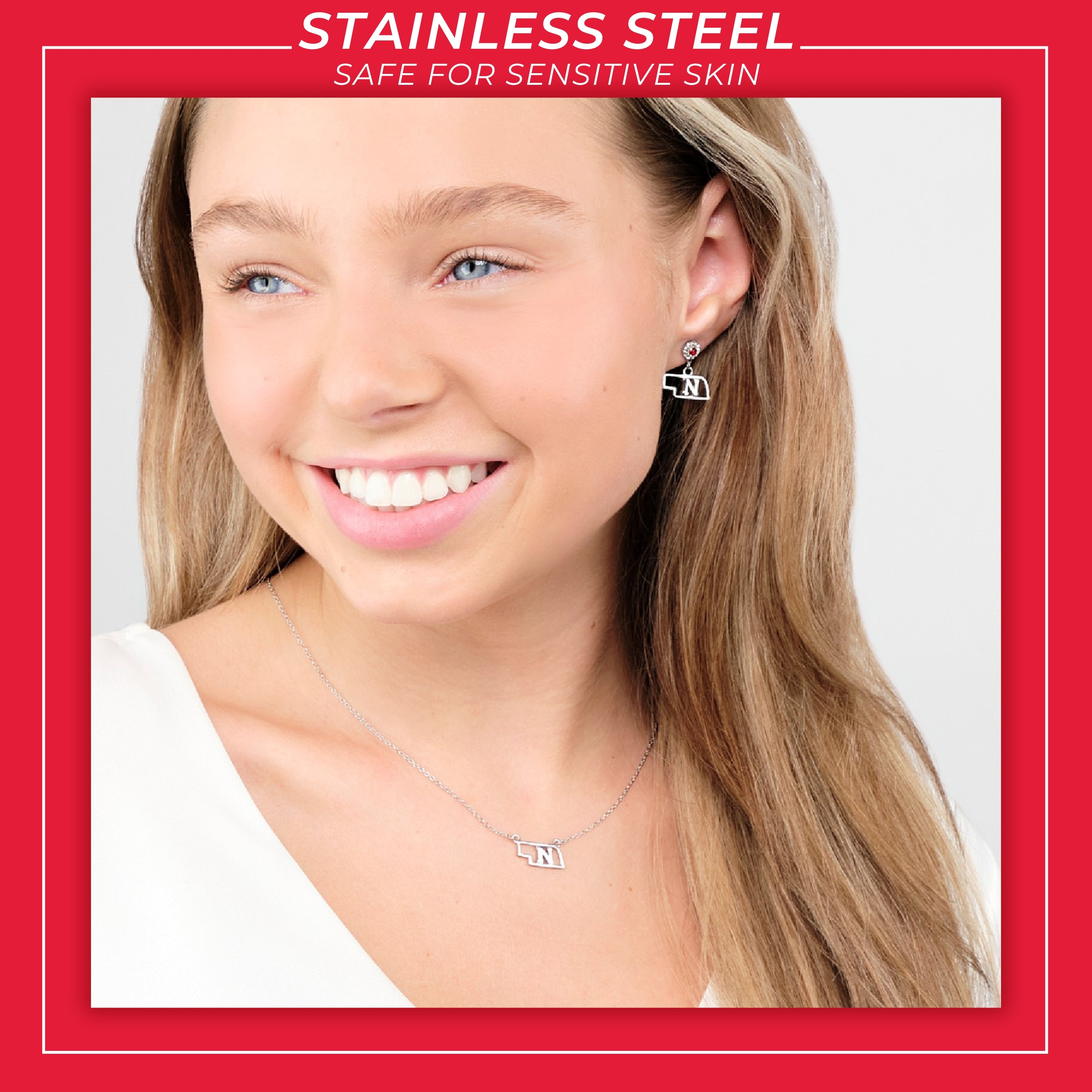 Stone Armory's Nebraska drop earrings are here! Gear up for the game with our beautifully designed Nebraska Cornhuskers earrings! Wear them to your next tailgate or around town to show off your University of Nebraska pride. These stainless steel Nebraska earrings would also make the perfect Nebraska gift for your favorite Nebraska Cornhuskers fan! The Nebraska Block N State logo is accented by sparkling red and clear crystals. Stone Armory's Nebraska jewelry is made of stainless steel and carefully designed, making these NCAA Nebraska drop earrings the perfect gift to celebrate Nebraska graduation, birthdays, Mother's Day, first day of school, the first game, or for everyday fan wear. Thank you for supporting our small business!