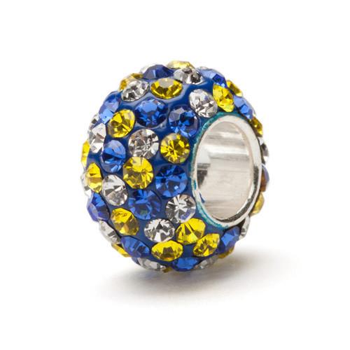 This blue and yellow crystal bead charm with silver core bead charms fits Pandora style bracelets and goes perfectly with your other Stone Armory beads.