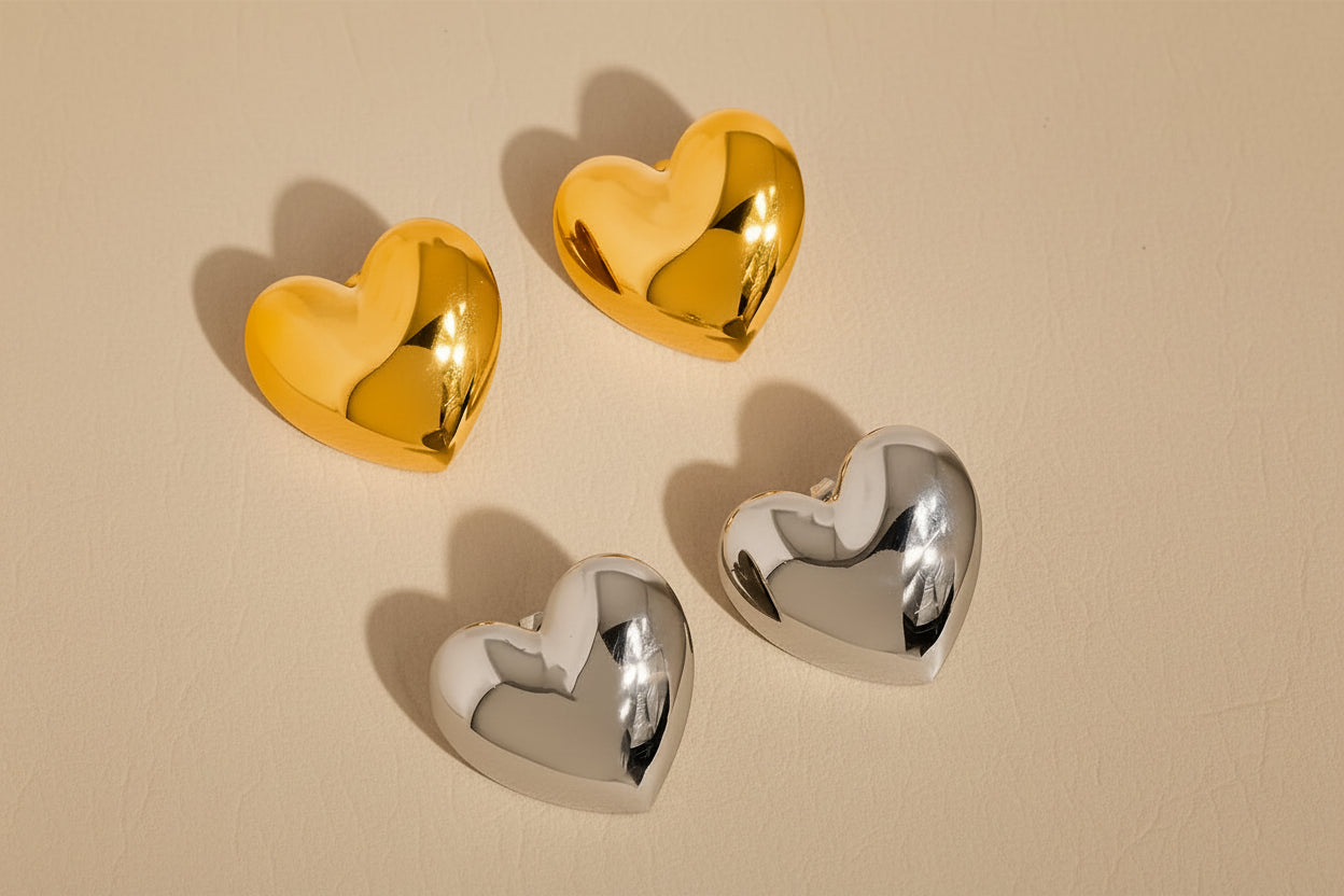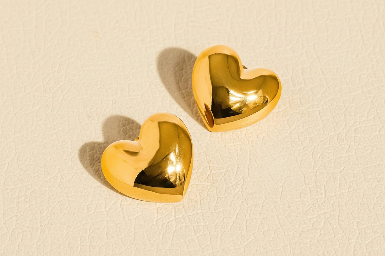 Rock these Chunky Heart Stud Earrings and let your personality shine! Built tough with hypoallergenic materials, they're your go-to pair for literally any occasion—gym days, coffee runs, fancy nights out, you name it. Say goodbye to tarnish worries; these beauties stay brilliant whether you pick the sleek stainless steel or the warm, glowing 18k gold plated finish. Comfortable enough to wear all day, stylish enough to turn heads, and versatile enough to match your whole wardrobe. Your new favorite earrings are here!