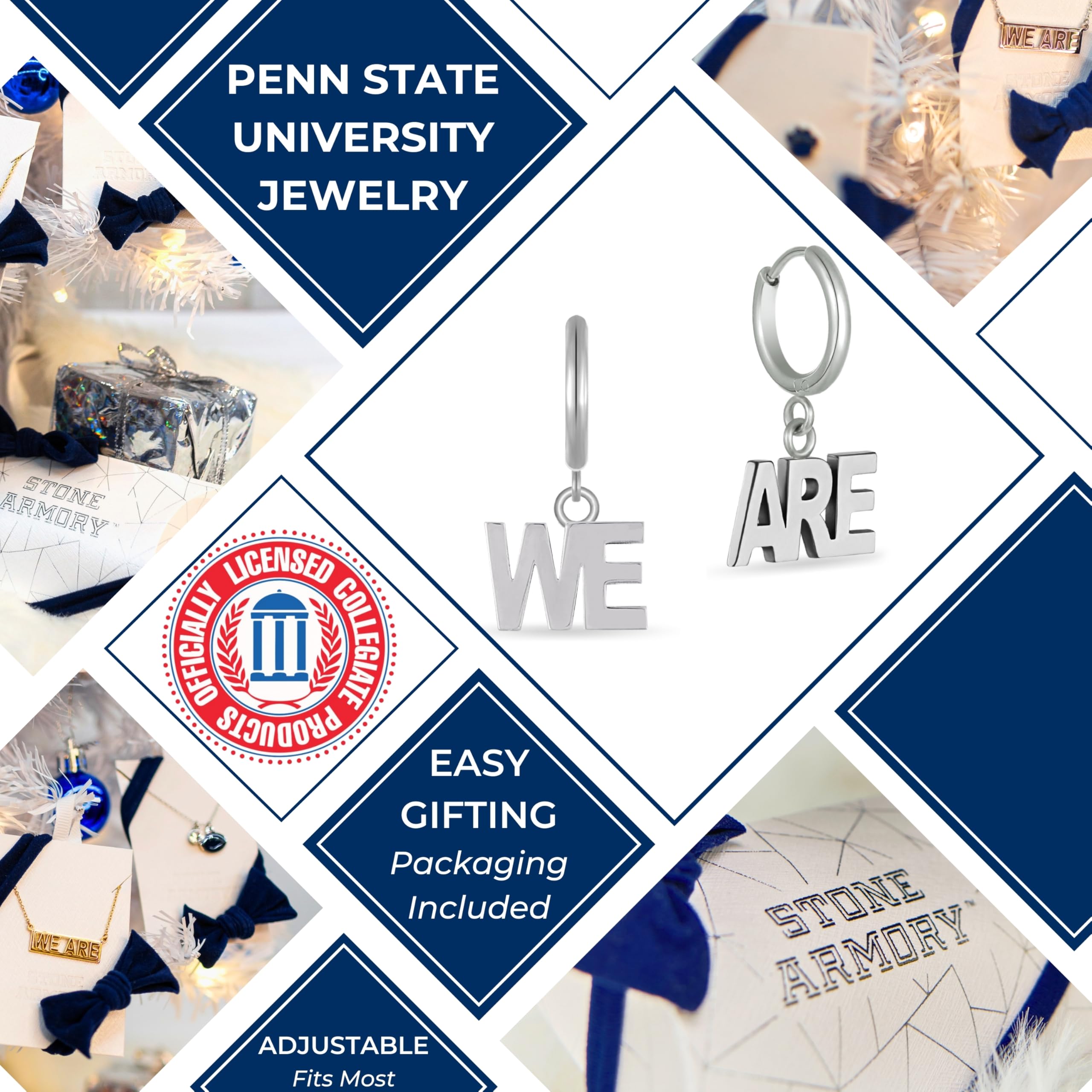 Express Your Penn State Pride: These officially licensed Stone Armory Penn State University earrings feature a sleek We Are design. Perfect for both game day and casual wear, these stainless steel earrings are an excellent way to showcase your Lion spirit