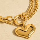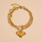 Rock that nostalgic Y2K aesthetic with this chunky gold heart chain bracelet—a playful statement piece designed for everyday wear. Featuring 18k gold plating that won't tarnish, it keeps its lustrous shine through all your adventures. Whether you're stacking it with other chains or letting it shine solo, this trendy accessory brings that coveted retro-cool energy to any outfit. Durable, dazzling, and totally low-maintenance—your new go-to wrist essential.