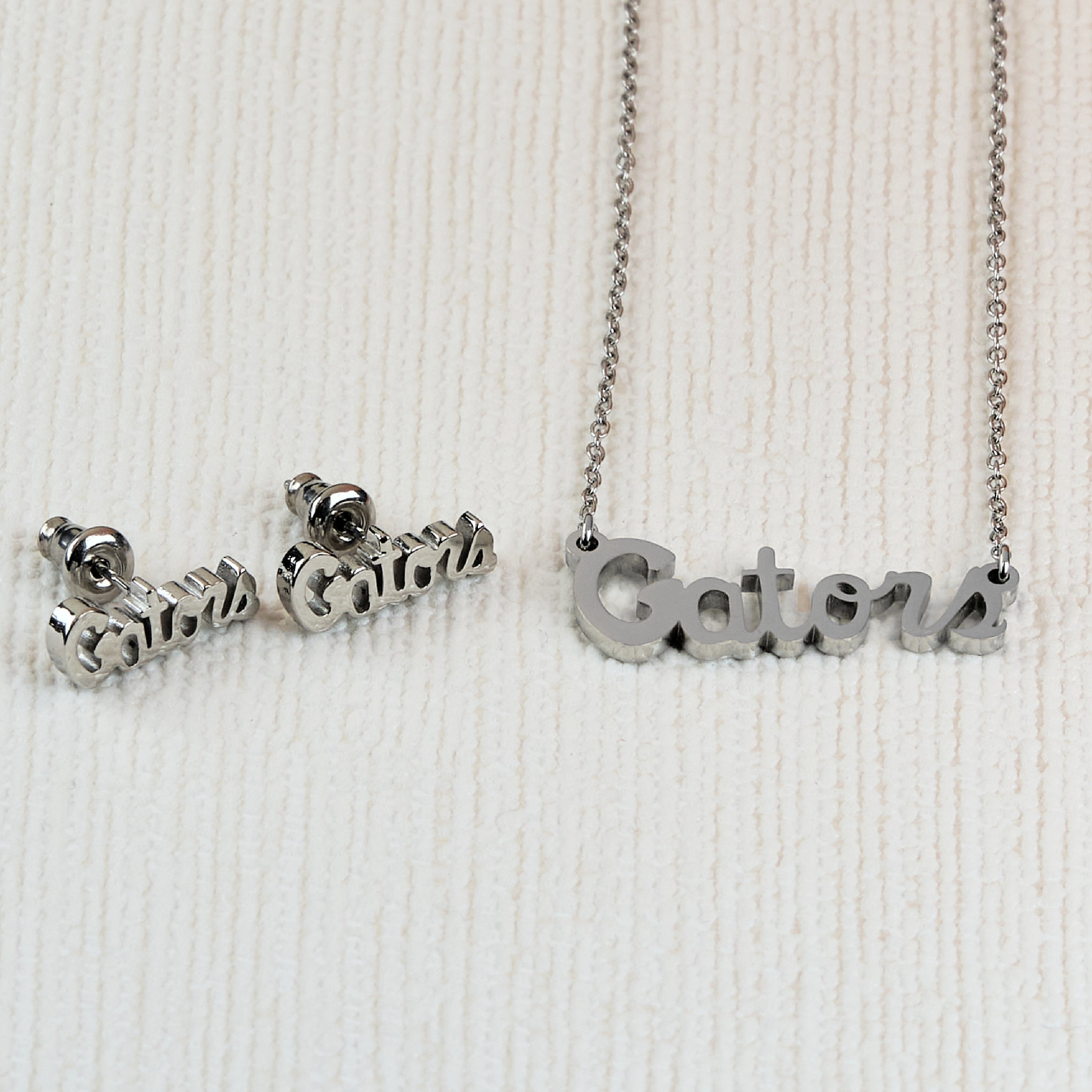 ["earring and necklace set","earring-necklace-set","earrings","Florida Earrings","Florida Gators","Florida Gators Earrings","Florida Gators Jewelry","florida gators necklace","Florida gift","Florida jewelry set","Florida Necklace","gators","Gators jewelry set","gift","gift set","graduation gift","holiday set","holiday sets","jewelry set","letter necklace","matching necklace","necklace","necklaces","pendant necklace","Script Earrings","script necklace","Script set","set","sets","single-necklace","sorority gift","stud earrings","UF Earrings"]