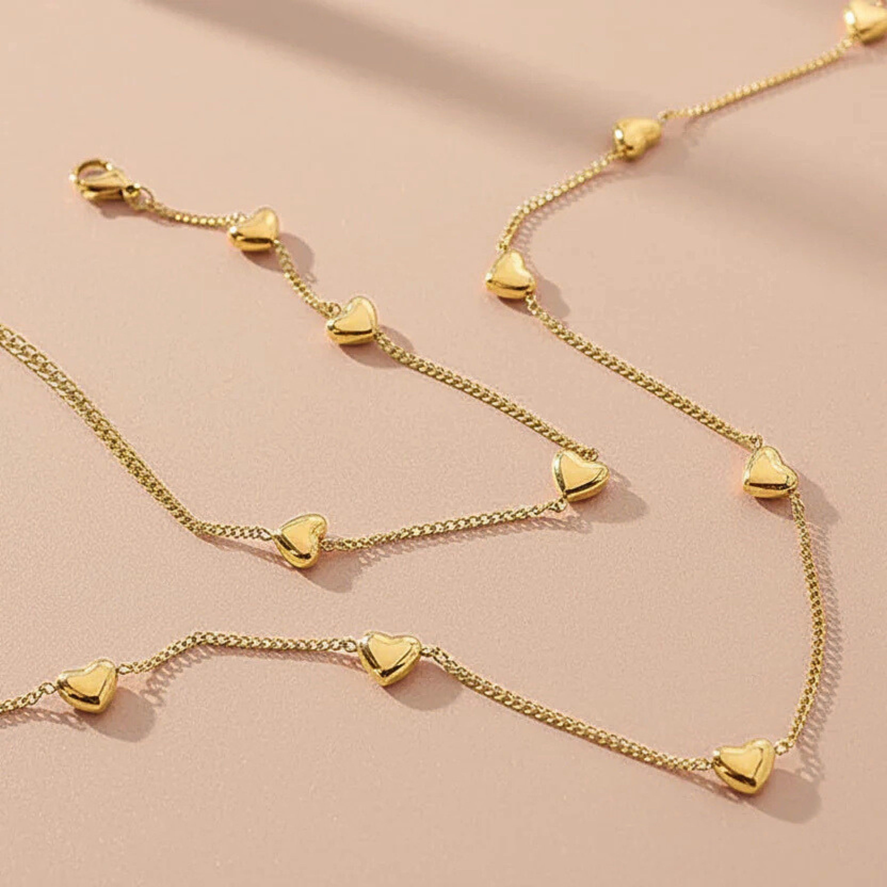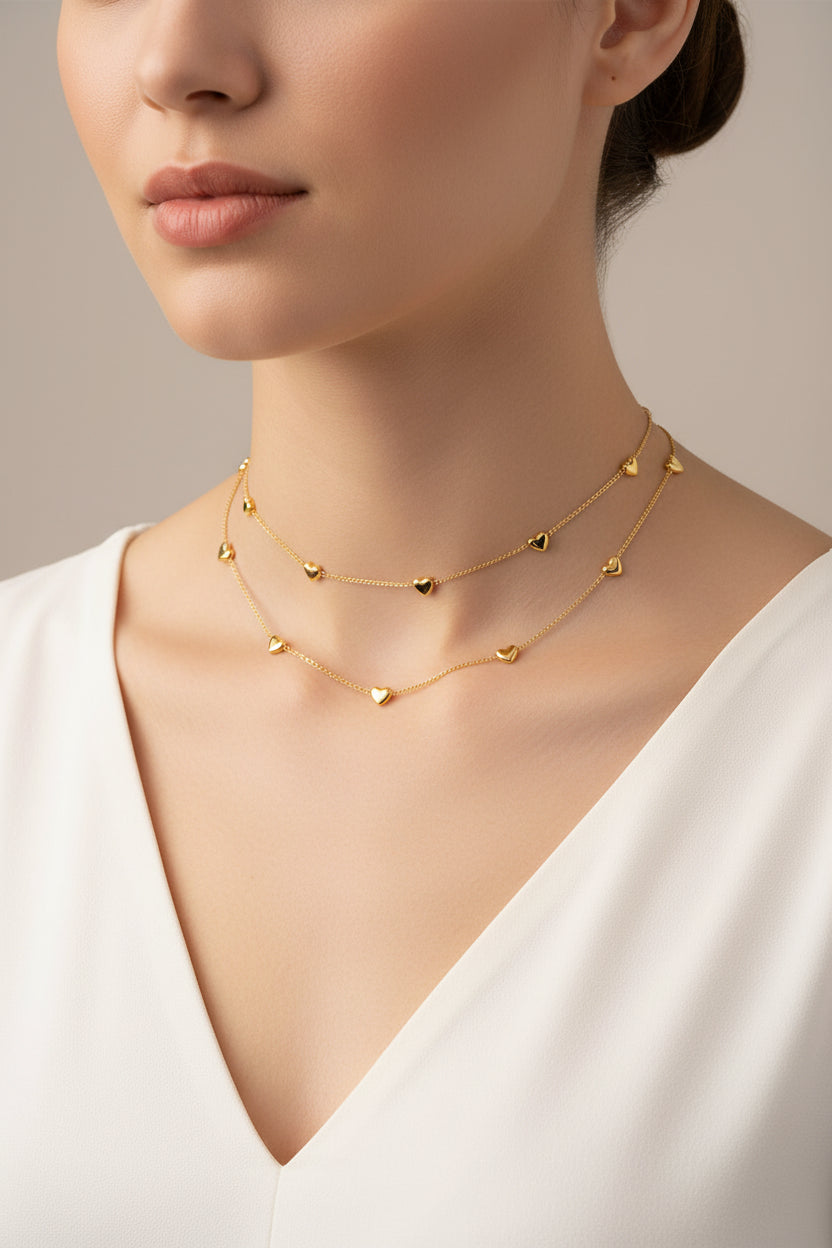 Elevate your everyday style with this dainty gold chain necklace featuring charming heart accents. Crafted with 18k gold plating and hypoallergenic materials, it's perfect for sensitive skin and won't tarnish with daily wear. The adjustable 13.7-inch chain ensures a custom fit for any occasion. Whether you're dressing up or keeping it casual, this versatile piece becomes an instant favorite—delicate enough for layering, bold enough to wear solo. Make it your go-to accessory that works as hard as you do.