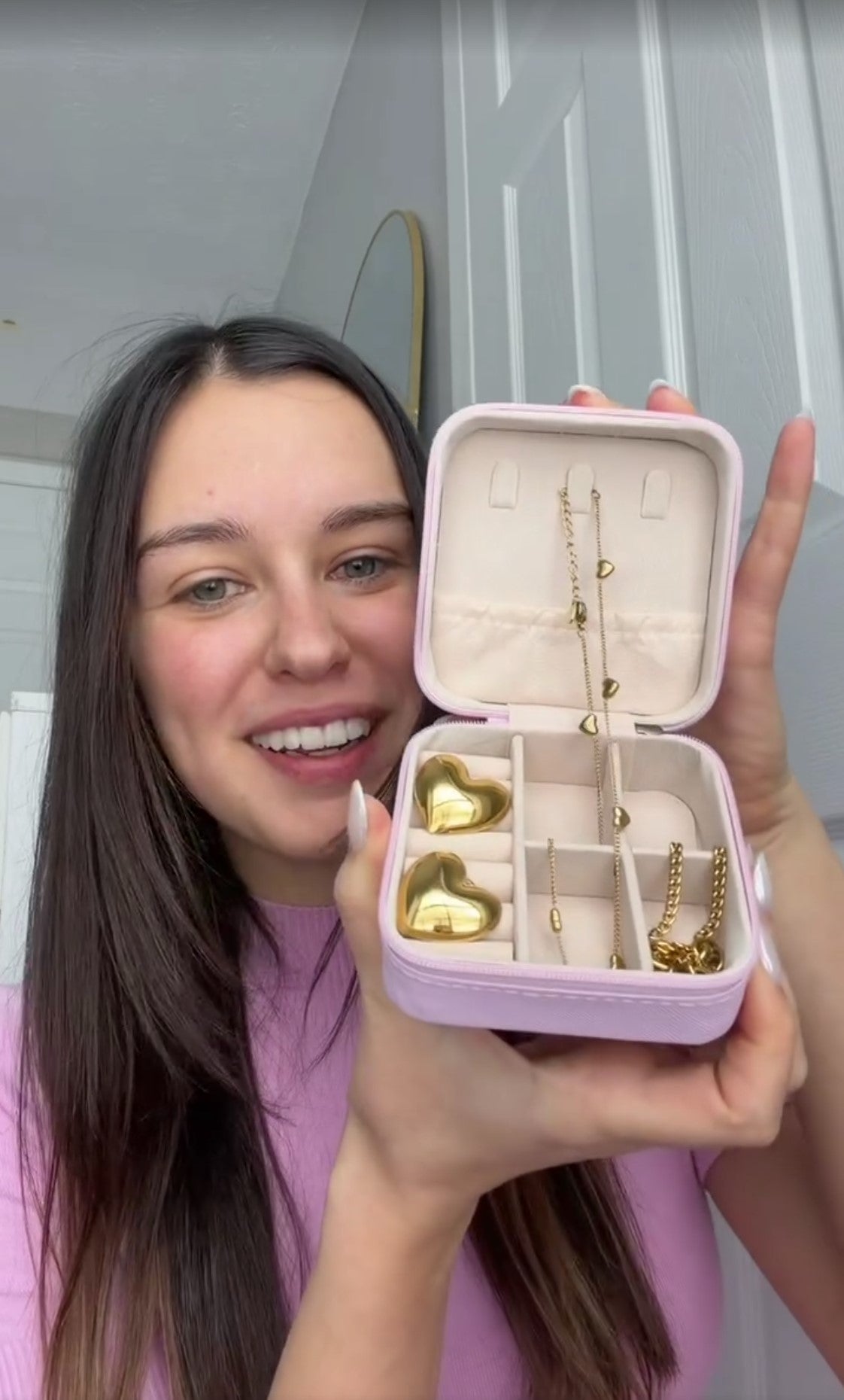 Spread the love this Valentine's Day with our charming gift set, perfectly packaged in a gorgeous pink jewelry box. This collection features three stunning pieces in 18K gold plating over stainless steel: chunky heart earrings that make a bold statement, a matching chunky heart bracelet for wrist-worthy style, and a delicate heart necklace for a touch of elegance. Mix and match these beauties to create your perfect look, or gift the entire set to someone special. Durable, radiant, and utterly romantic—your heart will skip a beat!