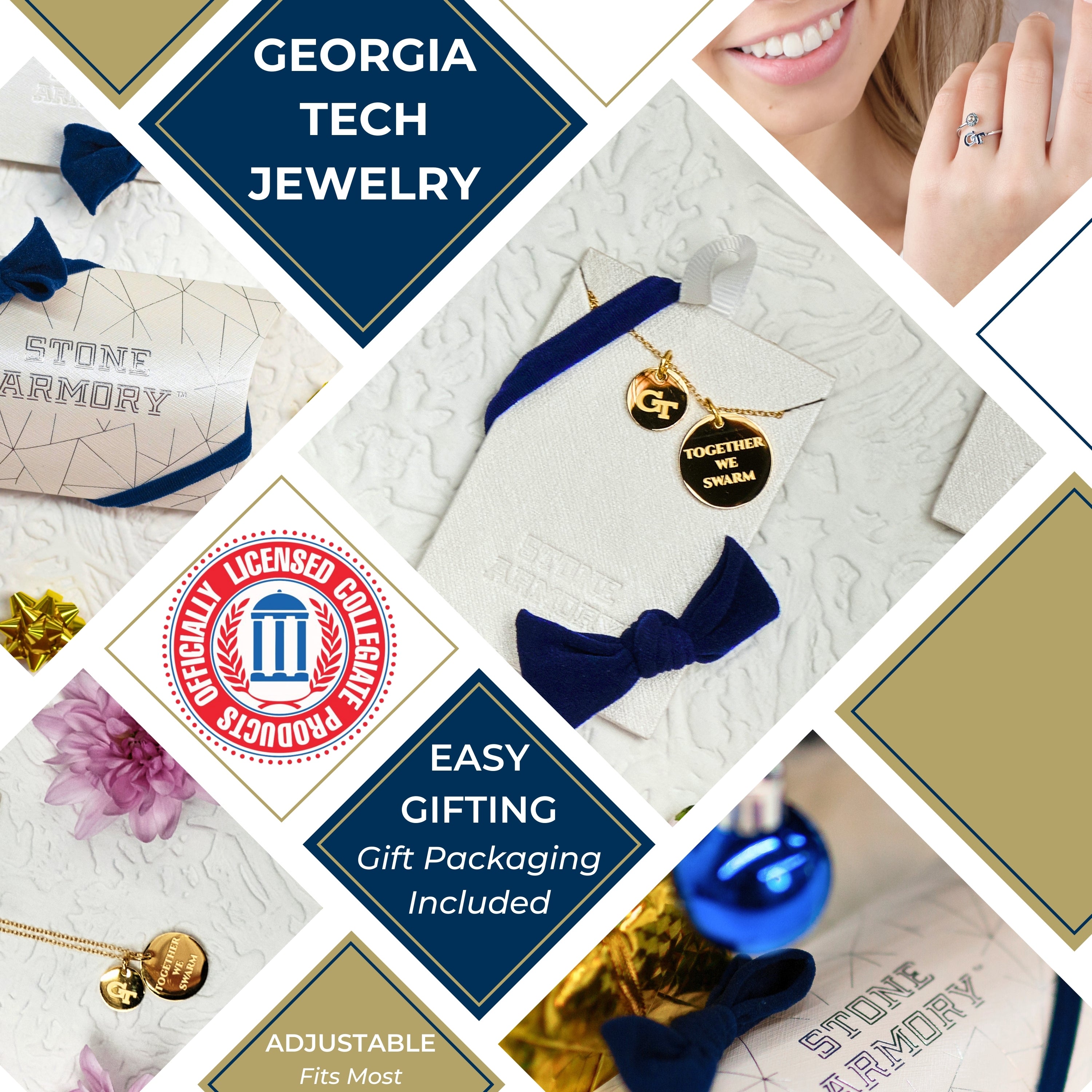 Express Your Georgia Tech Yellow Jackets Spirit Every Day: This officially licensed Stone Armory Georgia Tech necklace features 18K gold-plated pendants engraved with the iconic Block GT and the mantra 'Together We Swarm.' Designed for both casual and game-day wear, this adjustable necklace (16-20 inches) makes the perfect gift for Georgia Tech fans, students, and alumni