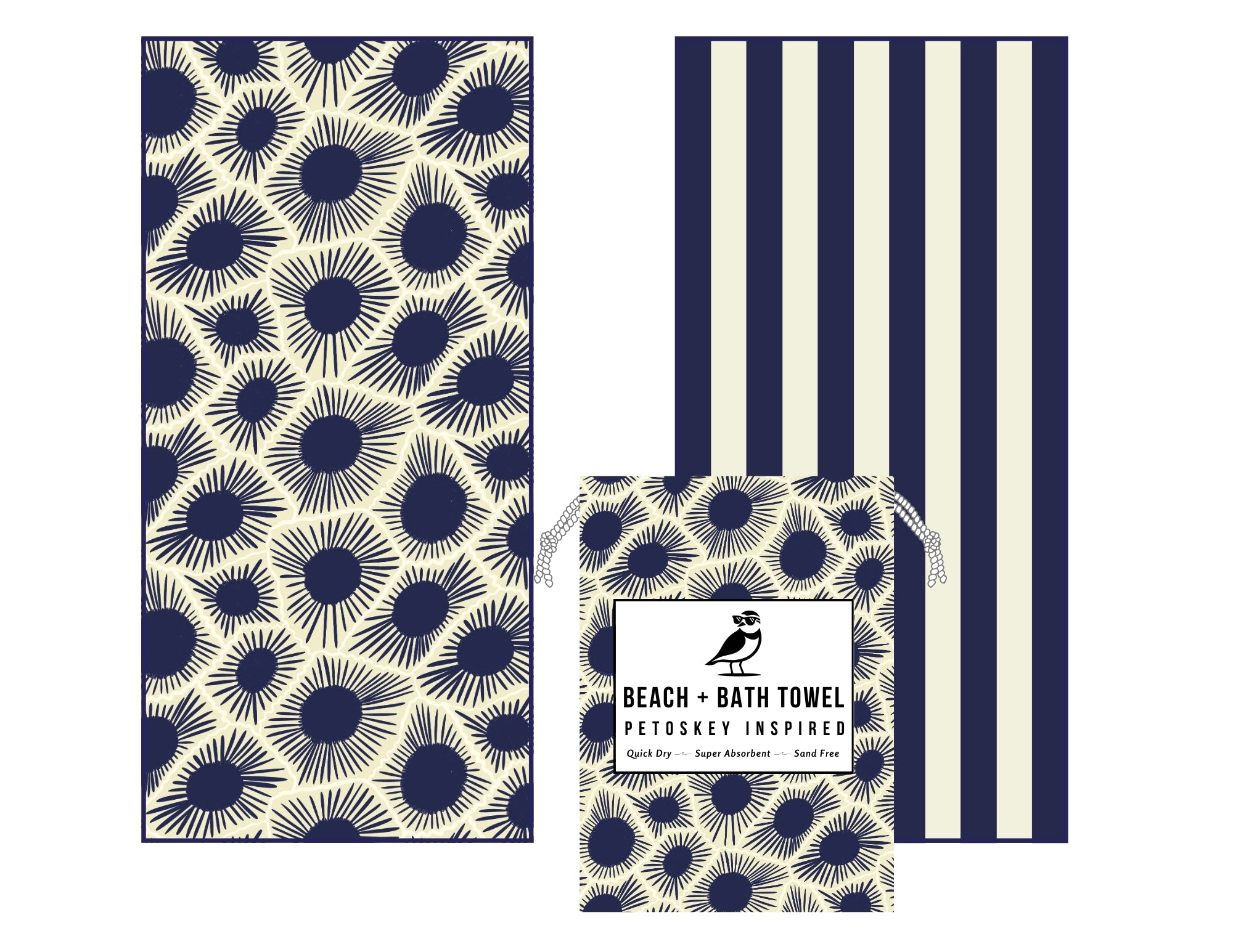 Soak up the sun and dry off fast with the SunBounder Petoskey Inspired Beach and Home Towel. This summer must-have is sand resistant, packs small and is incredibly absorbent. Plus, with a fun Up North design, you'll stand out on the beach (or maybe go unseen as Petoskey stones are hard to find)