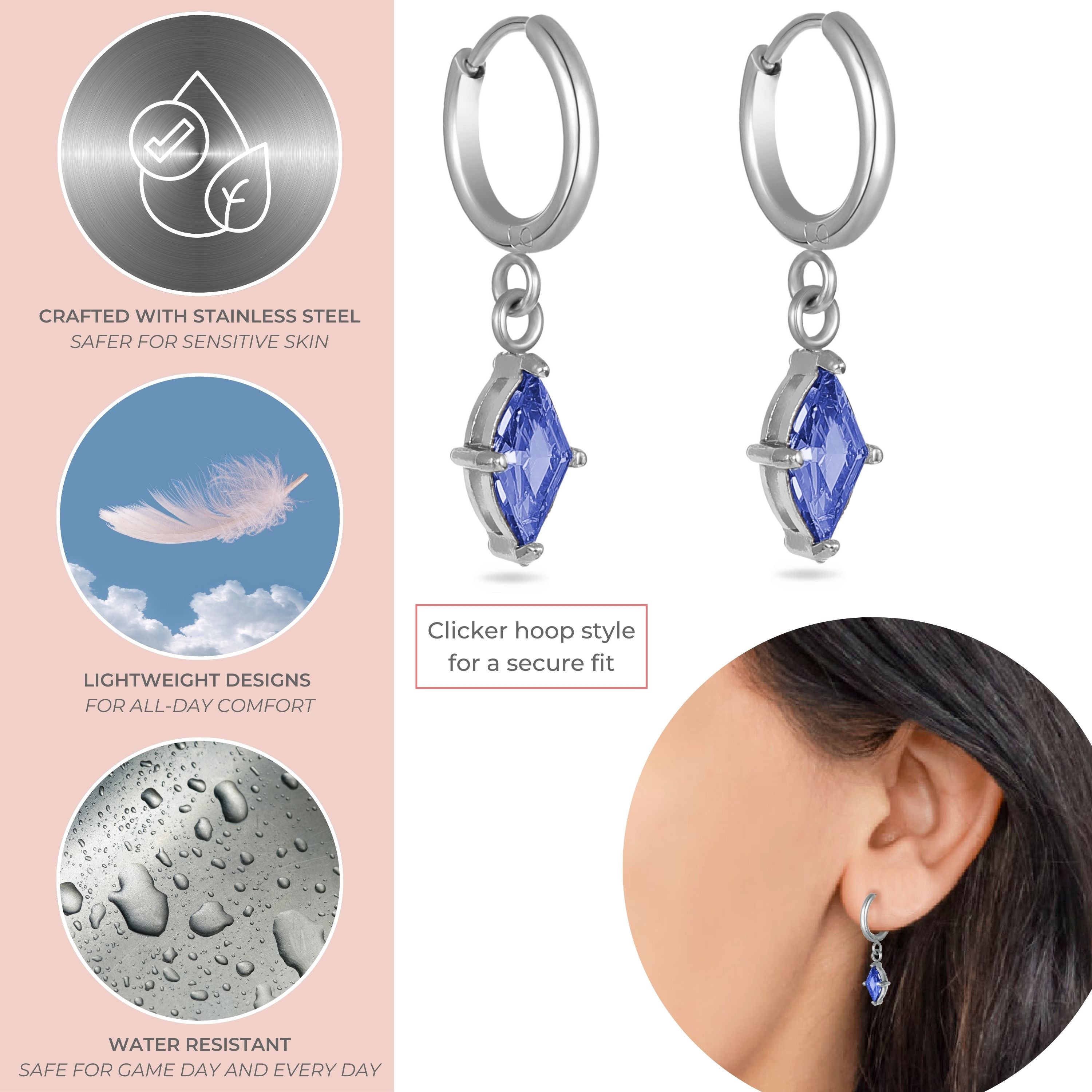 Our huggie hoop earring designs are a trendy and versatile collection— the perfect mix of style and school spirit. These lightweight stainless steel hoops are made to represent you during everyday wear, from crystal dangles to officially licensed collegiate designs. Stack them, mix and match colors, or rep your favorite team. Whether you're heading to class, the game, or just out and about, there's a pair for every vibe.