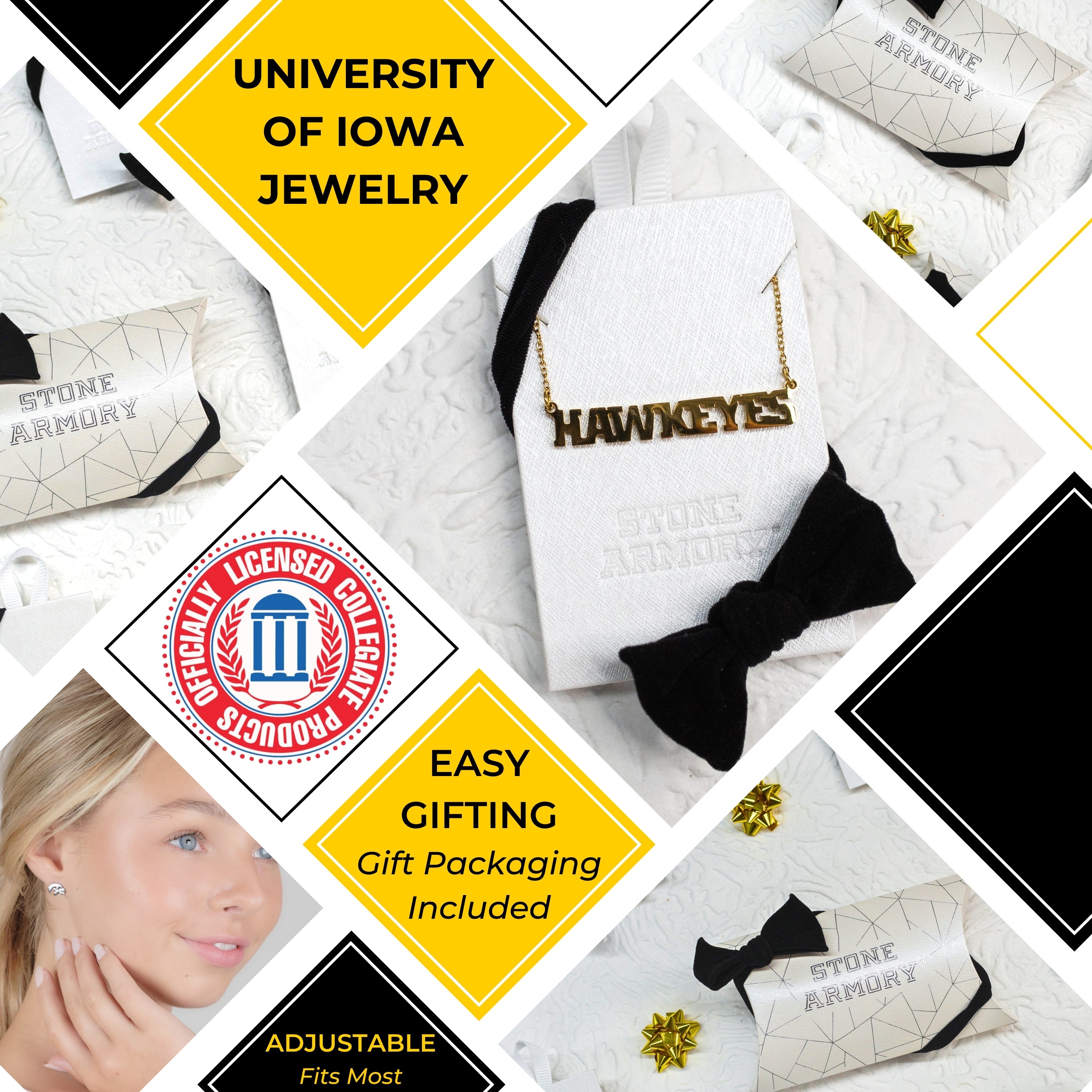 Support Small Business: Stone Armory is a small family business dedicated to bringing the passion of everyday life, the love for our America, its people, its beauty and its culture to jewelry pieces. Our goal is to bring life's joys into jewelry by designing pieces that capture the heart, soul, and spirit of memories made together. As avid college football fans, we are proud to present our Officially Licensed University of Iowa gold plated jewelry line.