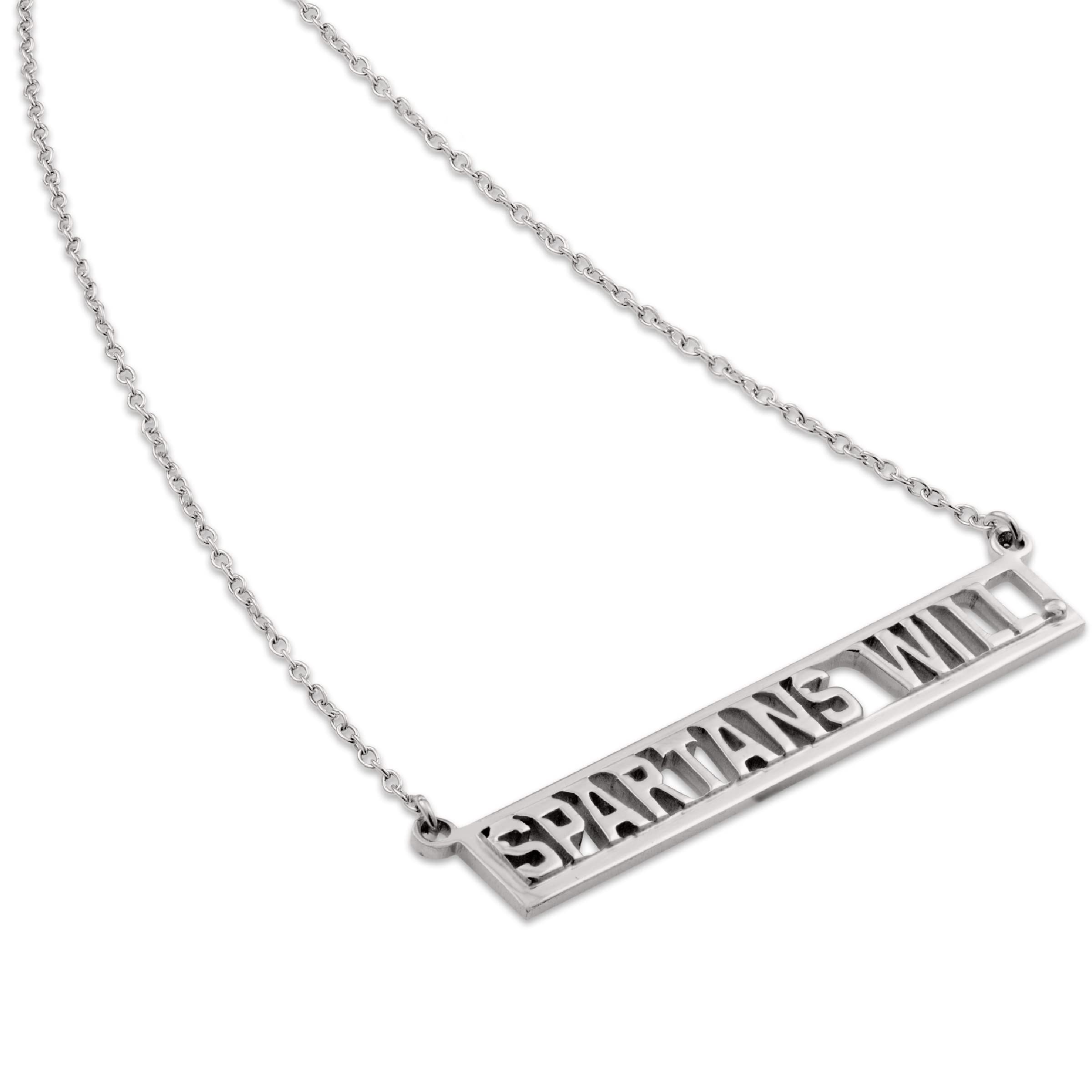 TREASURE YOUR Michigan State Spartans SPIRIT: This Stone Armory Michigan State Spartans Will jewelry set is officially licensed by the Michigan State University. Featuring dainty green Spartan stud earrings and a SPARTANS WILL. necklace, this MSU jewelry set is full of Michigan State Spartan pride!💚