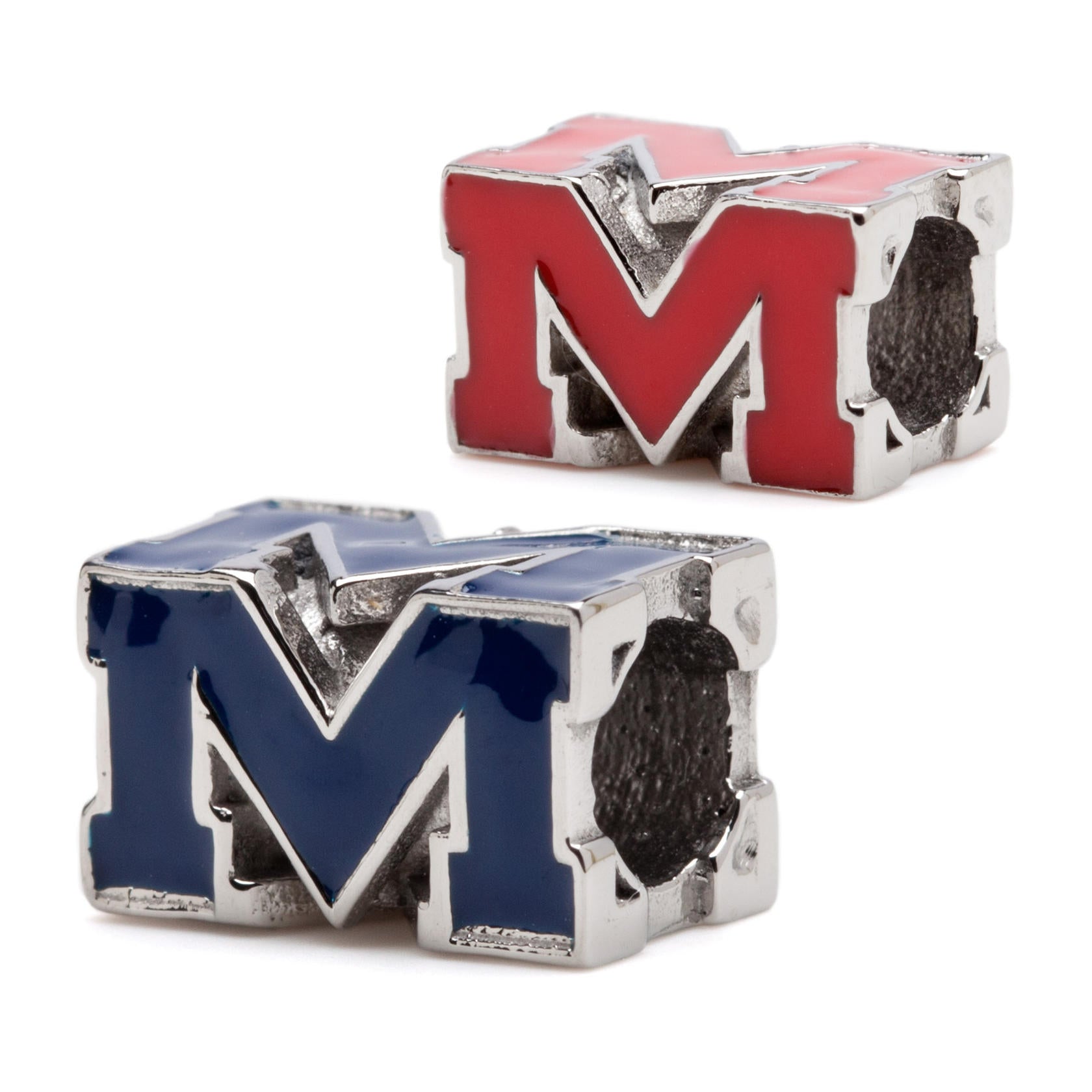 Ole Miss Rebels Red + Navy 4-Sided Block M Bead Charm Set