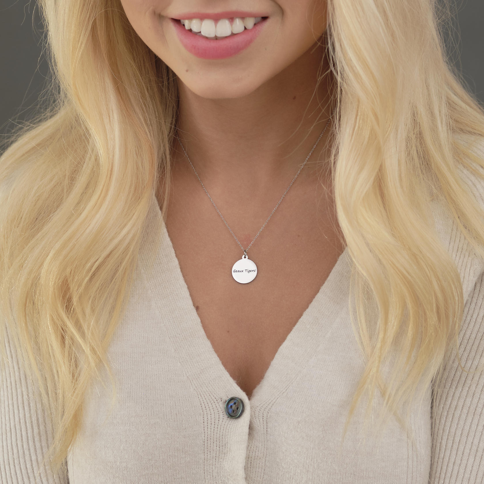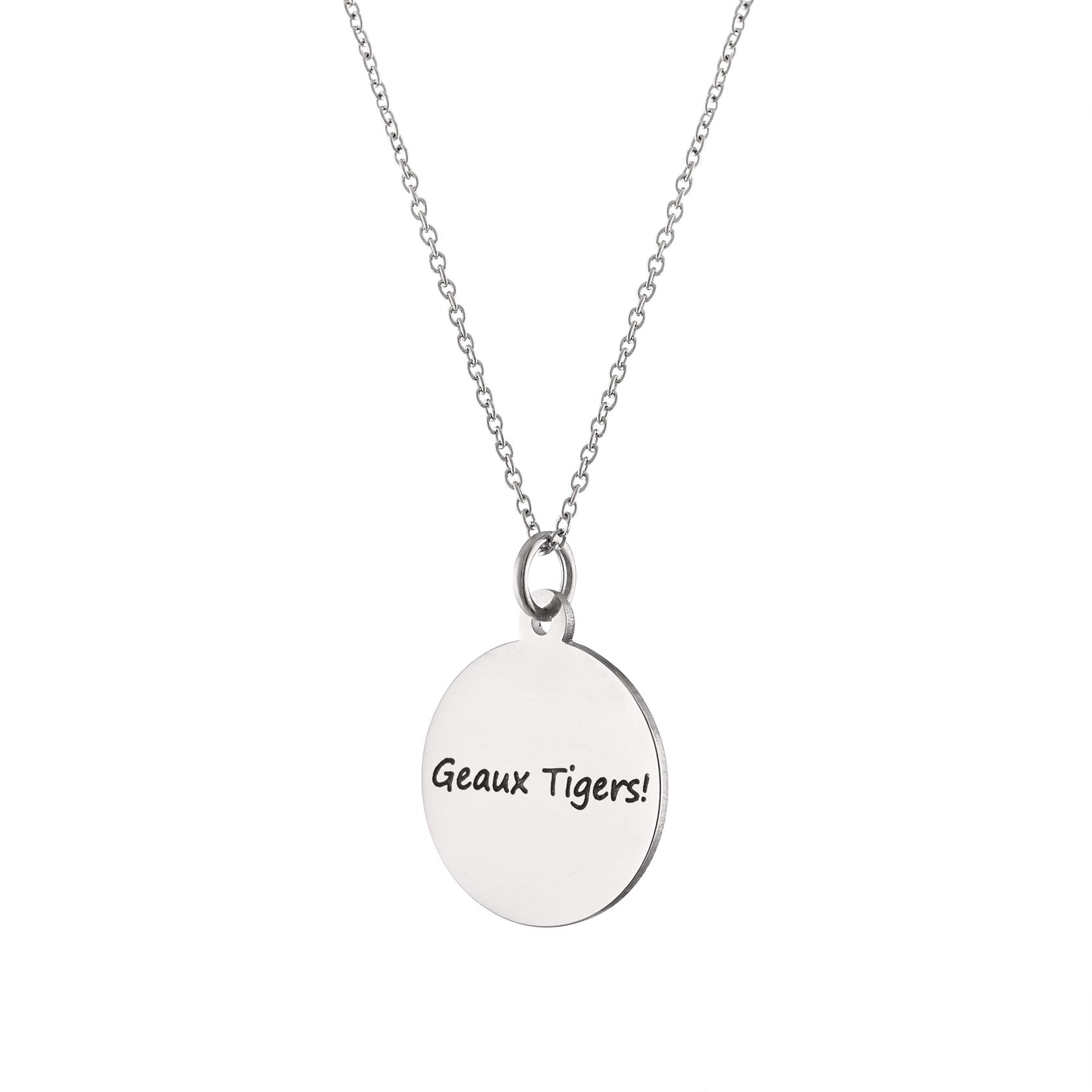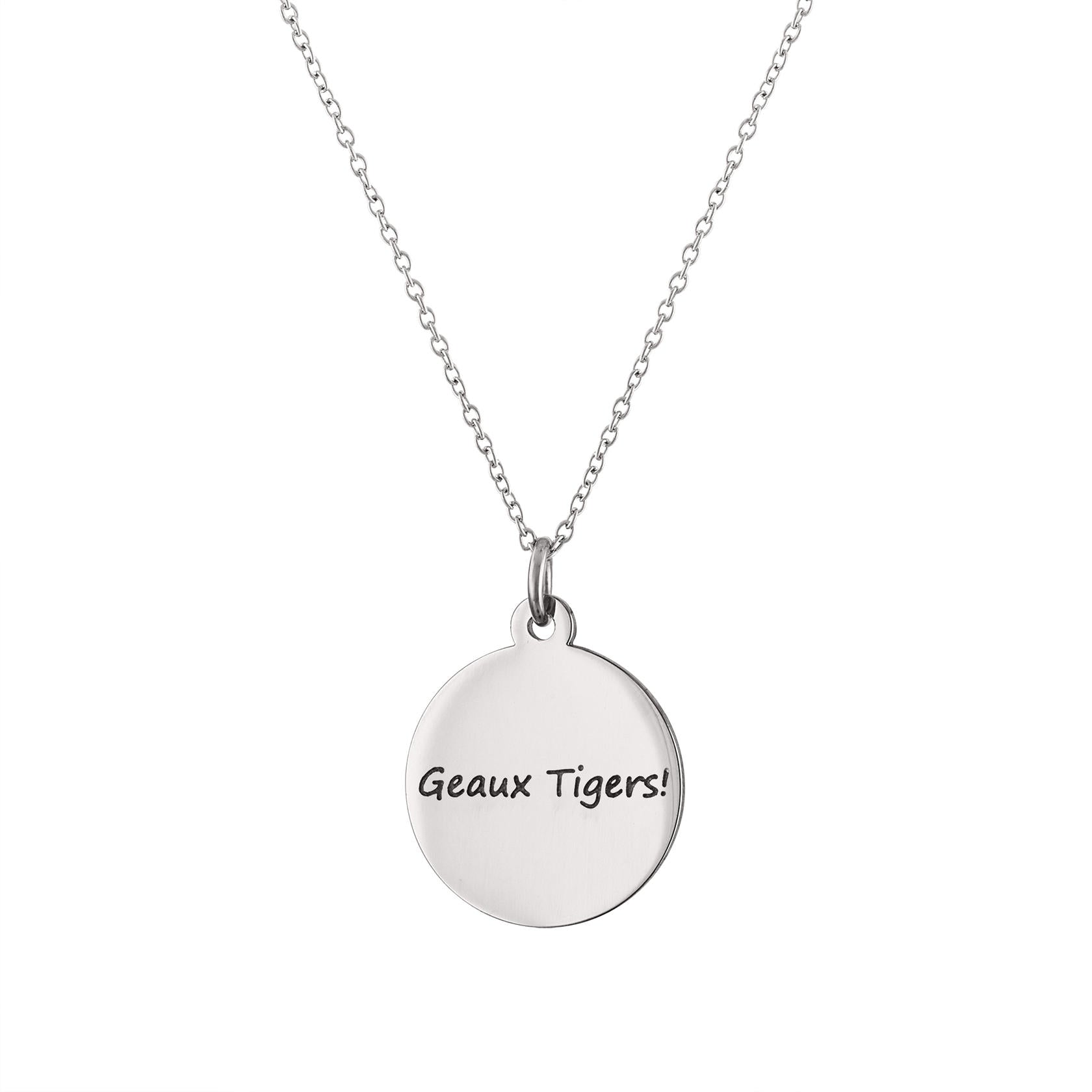 💜TREASURE YOUR LSU Tigers SPIRIT: This Stone Armory Louisiana State University necklace is officially licensed. This classic LSU coin pendant necklace is engraved with 'Geaux Tigers!' to show off your LSU Tiger pride.