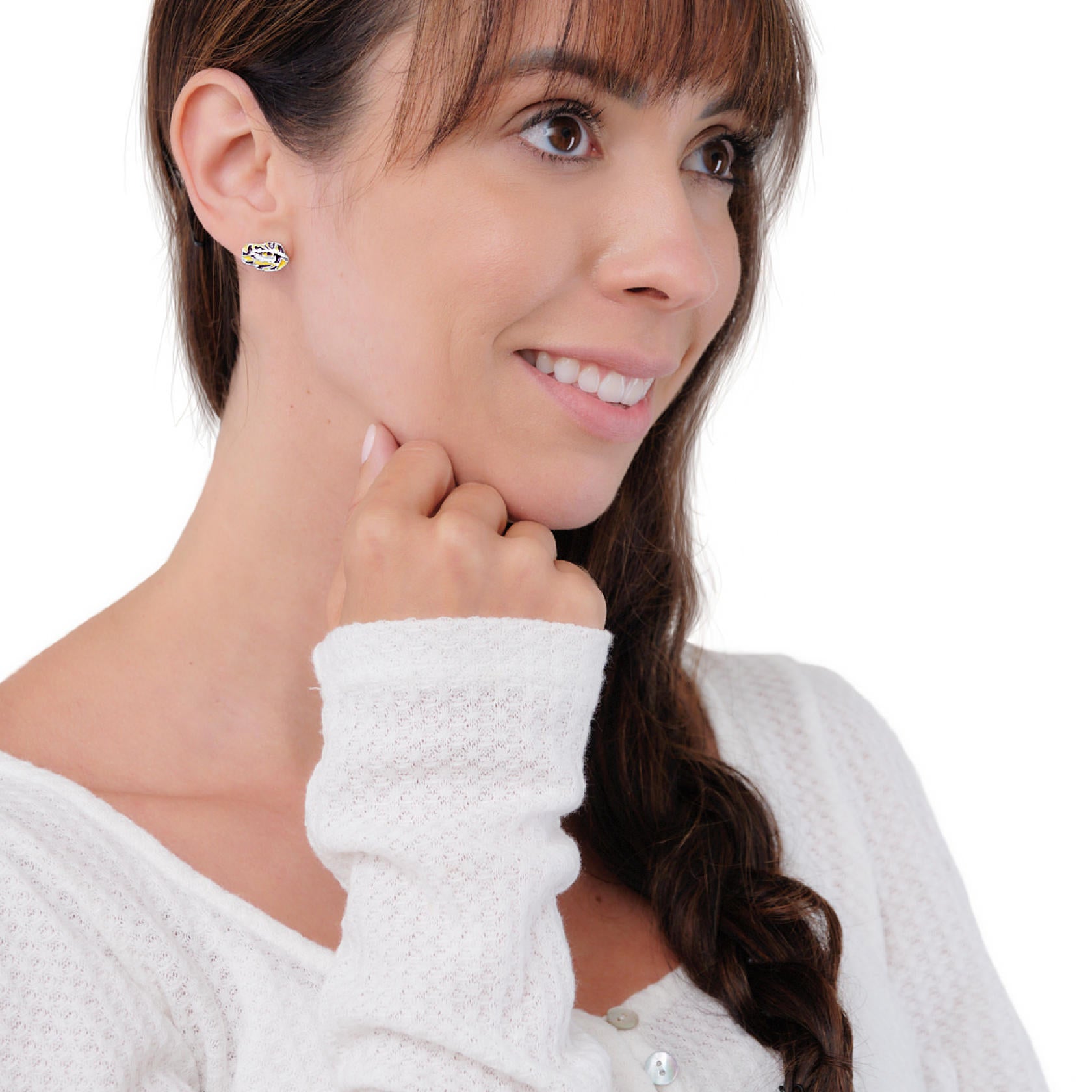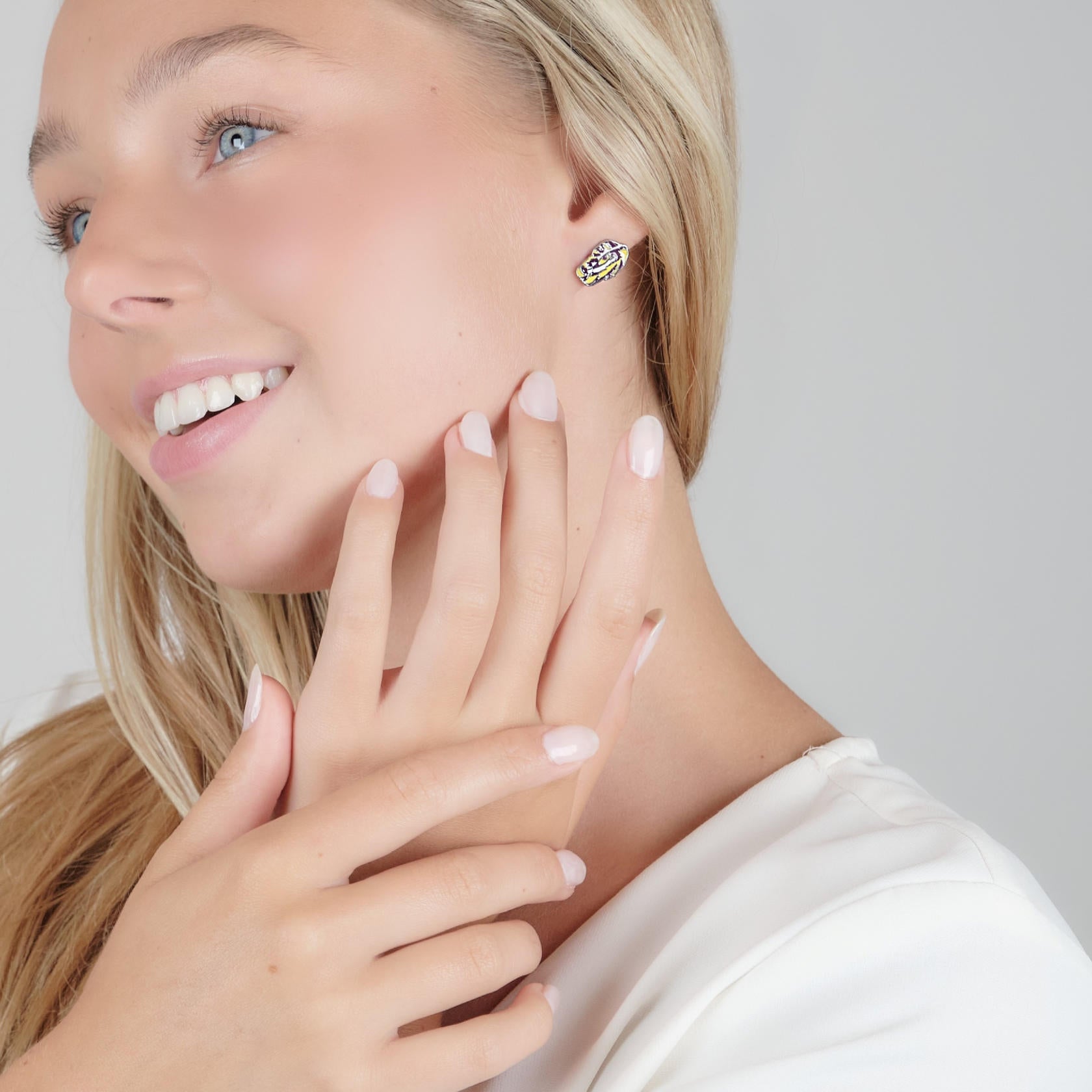 Your Perfect Fit - These LSU gold and purple earrings are always the perfect fit. Show off your beloved LSU Tiger football team and school with these statement earrings! These lightweight women's earrings measure 14.7mm wide x 9.0mm tall.