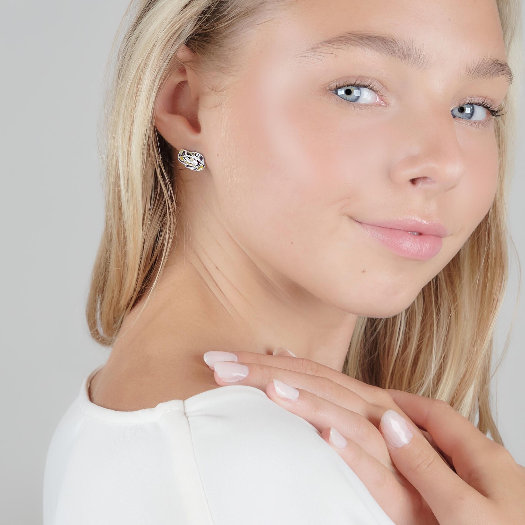 Treasure Your LSU Tiger Spirit - These Stone Armory Louisiana State University earrings are full of Tiger pride! Featuring a purple and gold tiger eye design, these classic Tiger earrings are just as unique as you. Geaux Tigers!