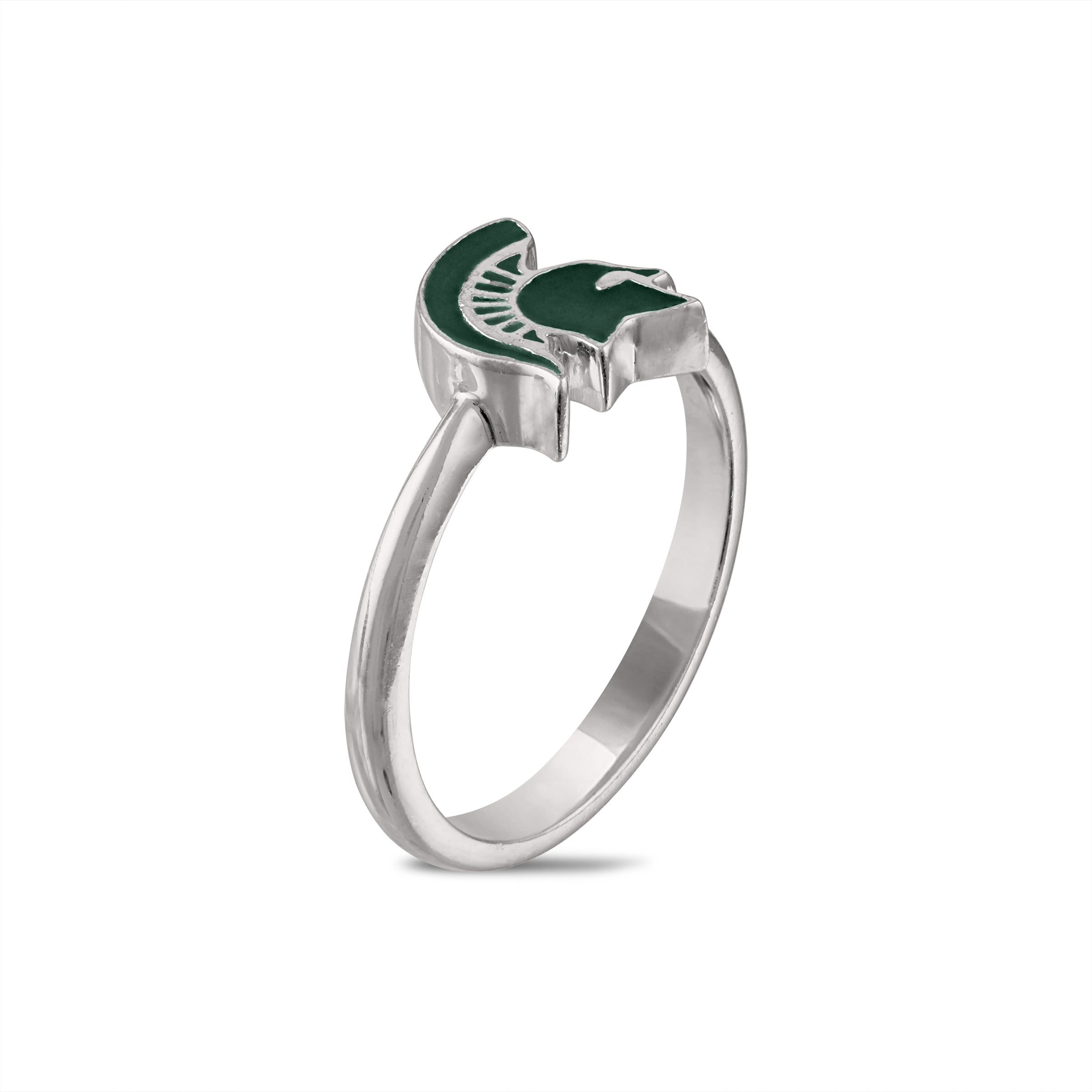 Enter the Spartans Stadium wearing this one-of-a-kind silver Spartans ring. This ring is perfect for any Sparty fan, student, or alumni. The ring features a green Spartan helmet logo. Look stylish with this ring as you stand up and sing Victory for MSU and chant “Go State!” as the band takes the field during any Spartans game. Go Green!