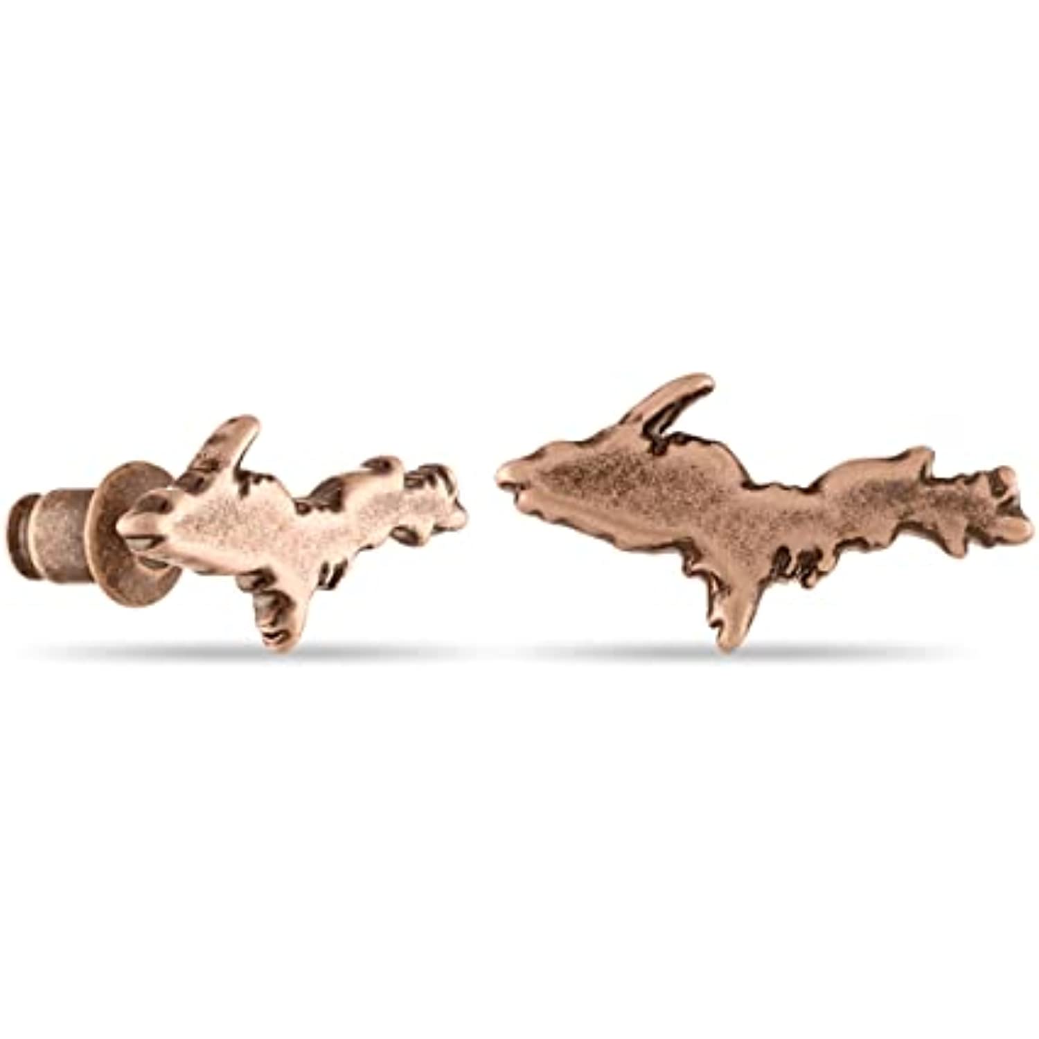 Stone Armory's antique copper plated Upper Peninsula stud earrings are here! Celebrate the Mitten State with our beautifully designed Upper Peninsula earrings. Wear them to your next Cherry Festival or around town to show off your UP pride. These antique copper earrings would also make the perfect gift for your favorite Yooper! Stone Armory's Michigan Upper Peninsula jewelry is lovingly designed and carefully crafted, making these UP stud earrings the perfect gift to celebrate Michigan graduations, birthdays, Mother's Day, first day of school, first day of summer, or for everyday wear. Thank you for supporting our small business!