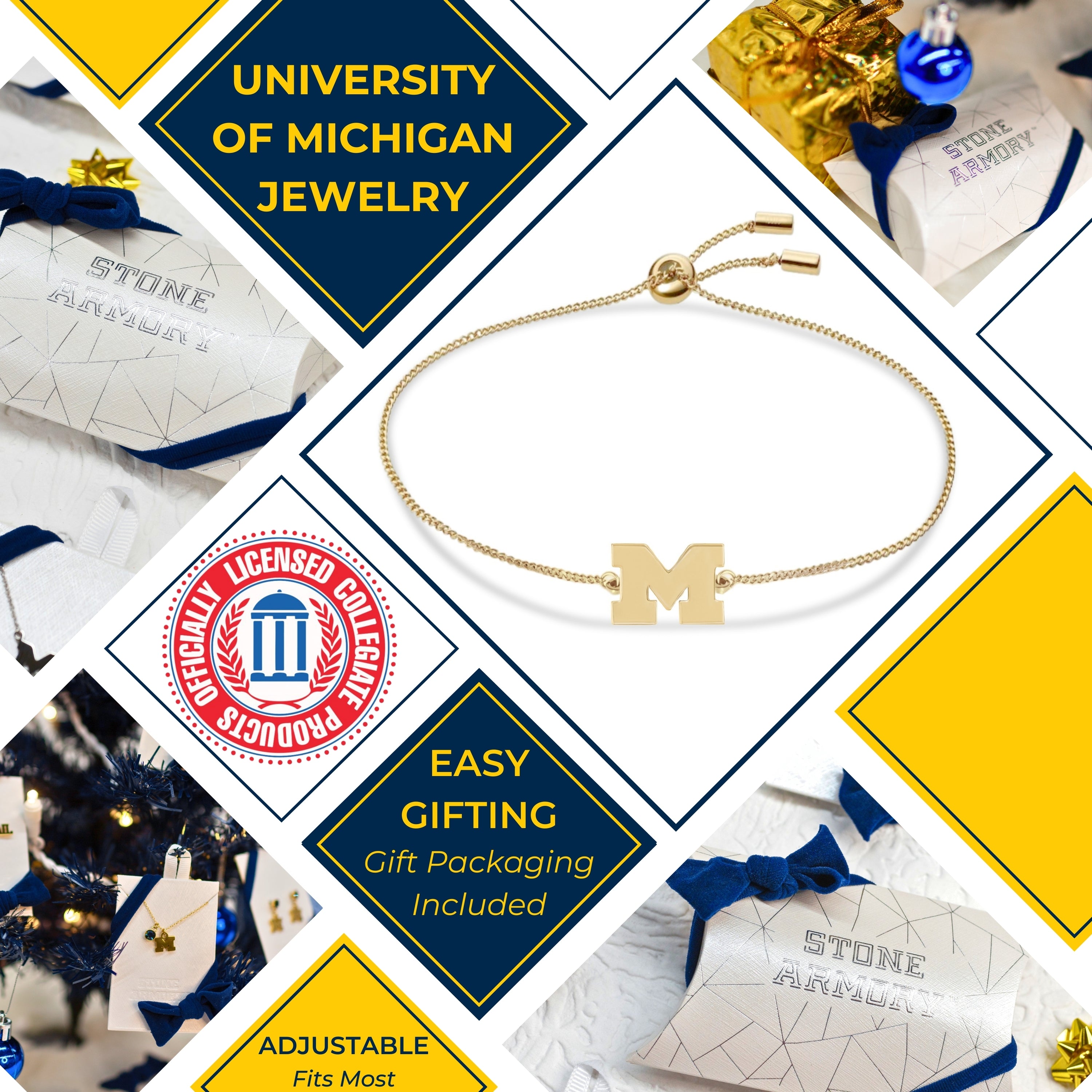 The Perfect U of Michigan Gifts : This UM Wolverines bracelet is adjustable in size and will fit most, making it perfect as Michigan football gifts for yourself, Michigan fans, graduates, students, moms, sisters, daughters and Michigan alumni. Great gift for Mother's Day, Christmas, birthdays and graduation. Go Blue!