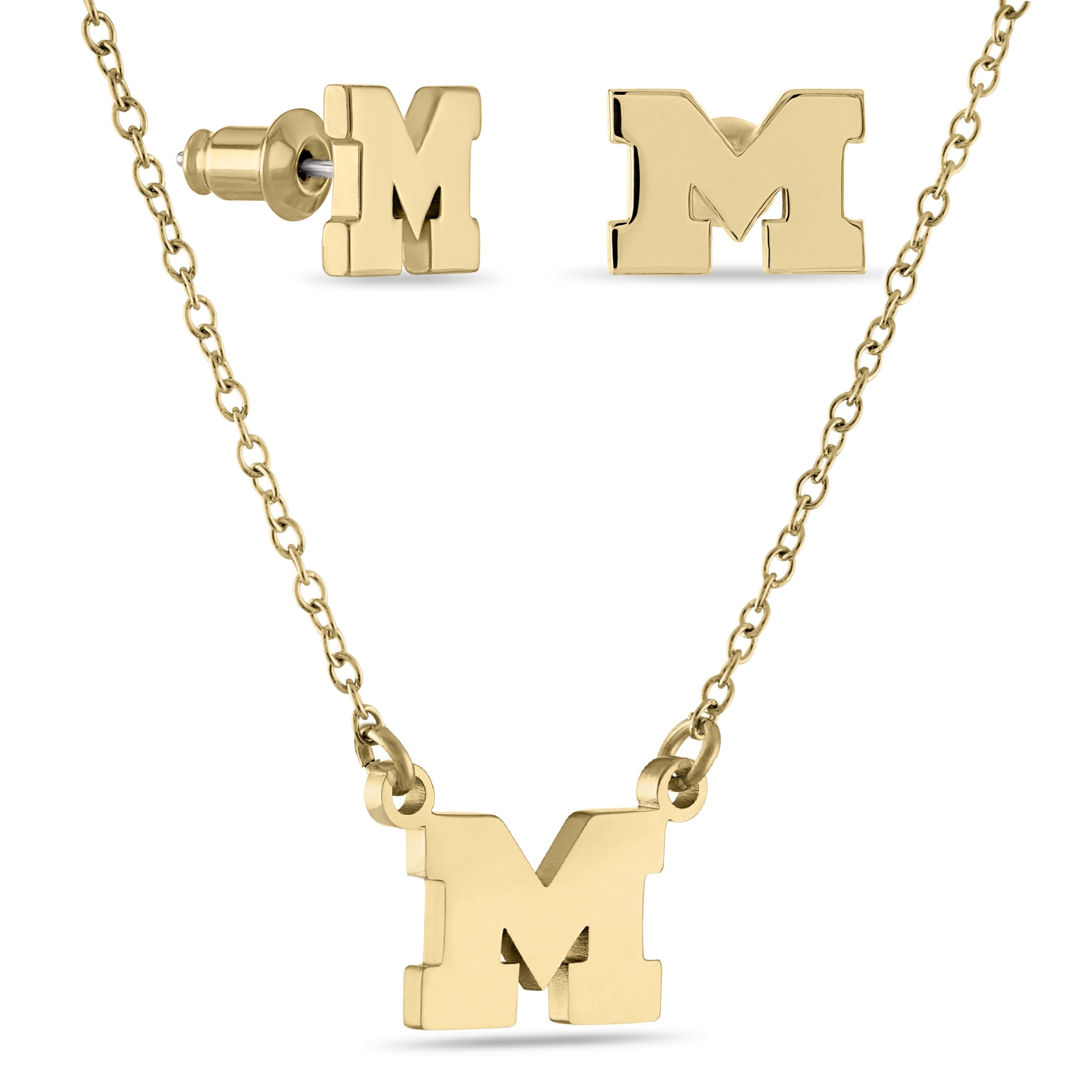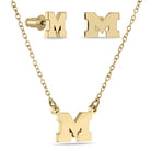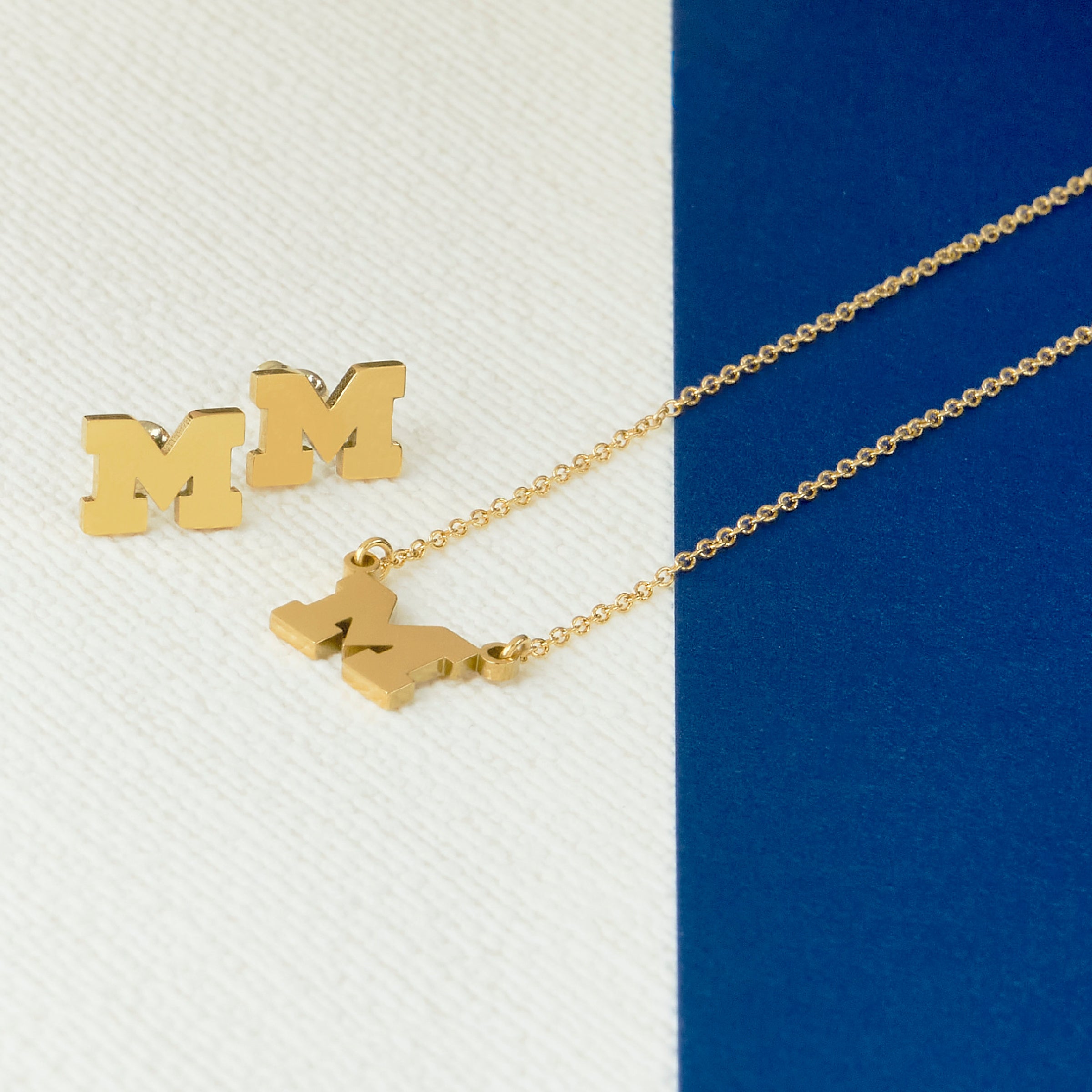 • Treasure Your Michigan Wolverines Spirit - This Stone Armory Michigan necklace and earring set is full of Wolverine pride! Featuring gilded block M stud earrings and matching gold plated necklace, this Michigan jewelry set is just as unique as you.