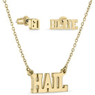 Stone Armory's Michigan Gold Script jewelry set is finally here! Gear up for the game with our beautifully designed and combined University of Michigan earring and necklace set, featuring cute and dainty 18K gold plated GO BLUE Michigan stud earrings and a HAIL gold plated necklace. Wear them as football accessories to your next tailgate or around town to show off your Michigan Wolverine pride! This UM jewelry set would also make the perfect Michigan gift for your favorite Wolverines fan. Stone Armory's University of Michigan jewelry is carefully crafted to last out of premium 18K gold and durable stainless steel, making this NCAA Michigan earring and necklace set the perfect gift to celebrate Michigan graduation, birthdays, Mother's Day, the first day of school, the first game, or for everyday fan wear. Thank you for supporting our small business!