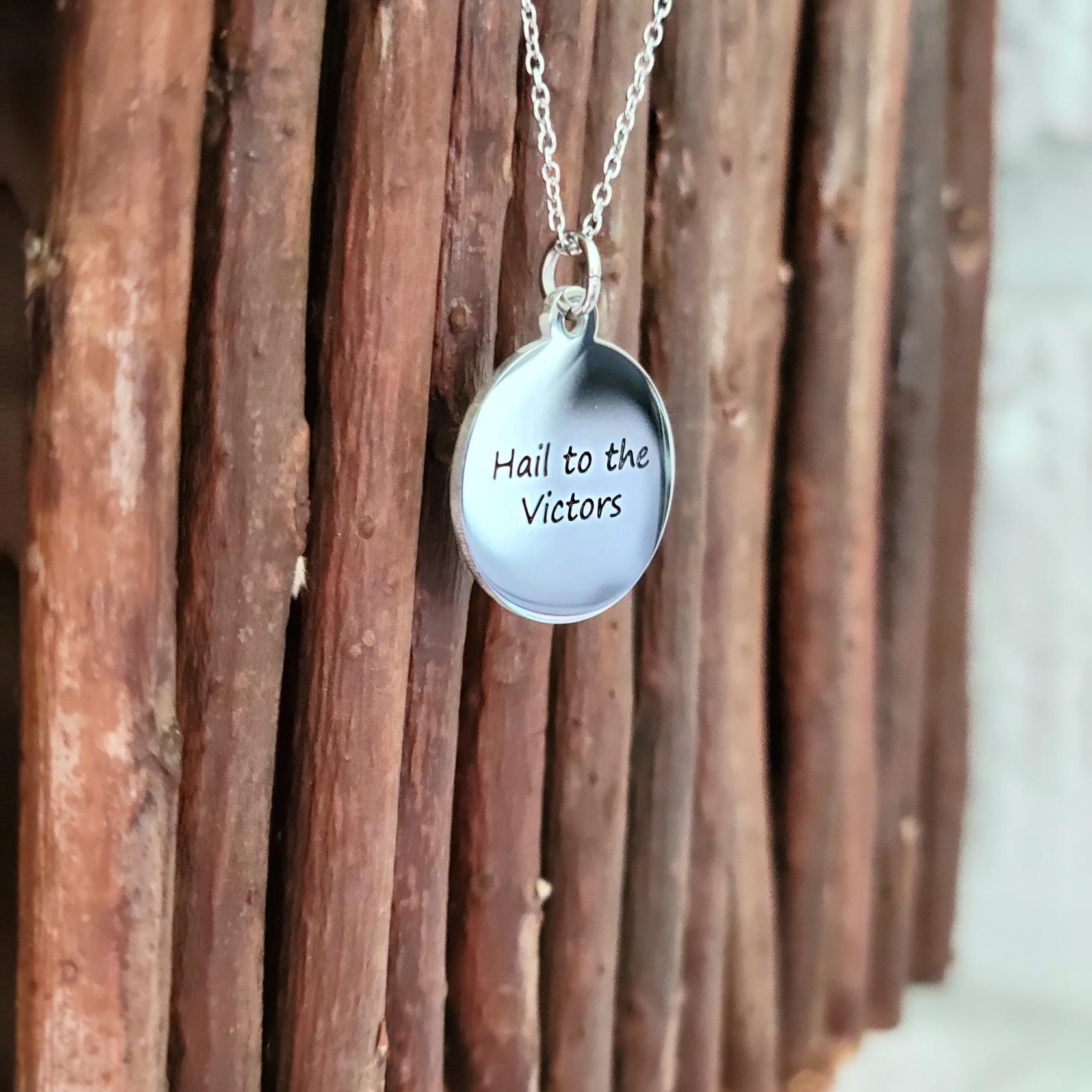 Stone Armory's Michigan Spirit necklace is finally here! Gear up for the game with our beautifully designed University of Michigan necklace, featuring a stainless steel coin pendant engraved with 'Hail to the Victors'. Wear it to the next tailgate or around town to show off your Michigan Wolverine pride. This adjustable UM necklace would also make the perfect Michigan gift for your favorite Michigan Wolverines fan! Stone Armory's University of Michigan jewelry is made of stainless steel and is adjustable in size, making this NCAA Michigan necklace the perfect gift to celebrate Michigan graduation, birthdays, Mother's Day, first day of school, the first game, or for everyday fan wear. Thank you for supporting our small business!