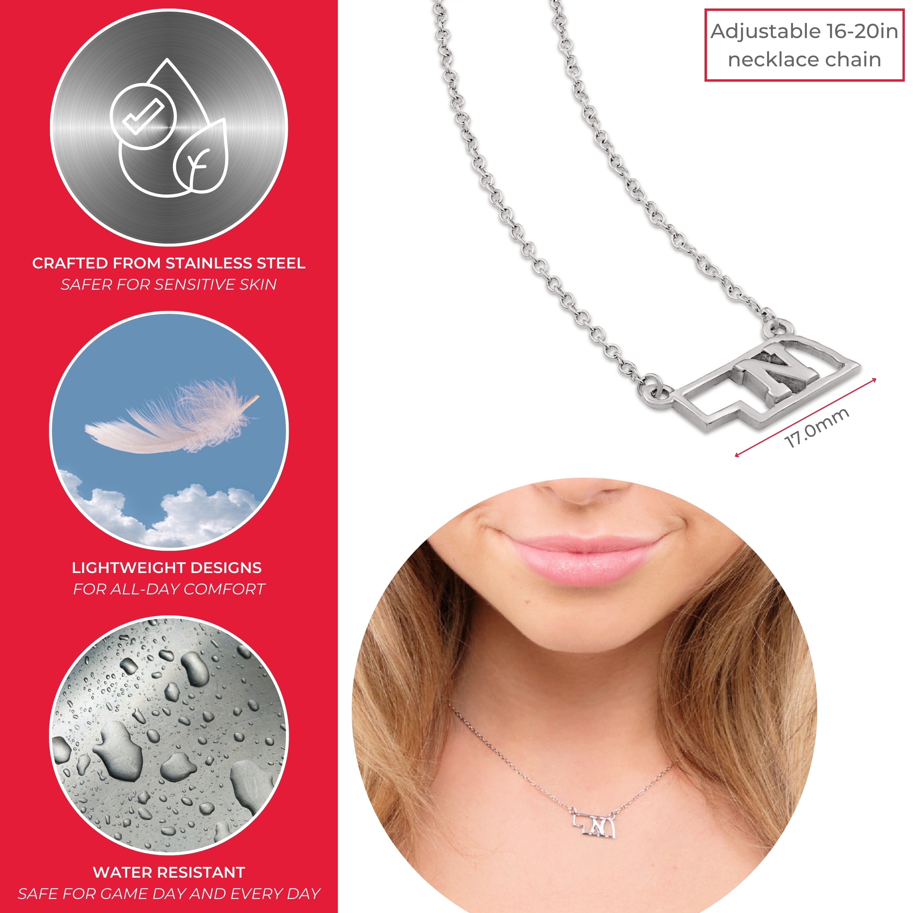 Your Perfect Fit - This stainless steel necklace is adjustable in size from 16-20 inches, so you can always find the perfect fit. Whatever length you choose, this classic Nebraska design will always show your Cornhusker pride. Wear it alone or as the matching necklace to our crystal Nebraska earrings to create your own Nebraska jewelry set! The block N necklace pendant measures 17.0mm wide x 7.8mm tall.