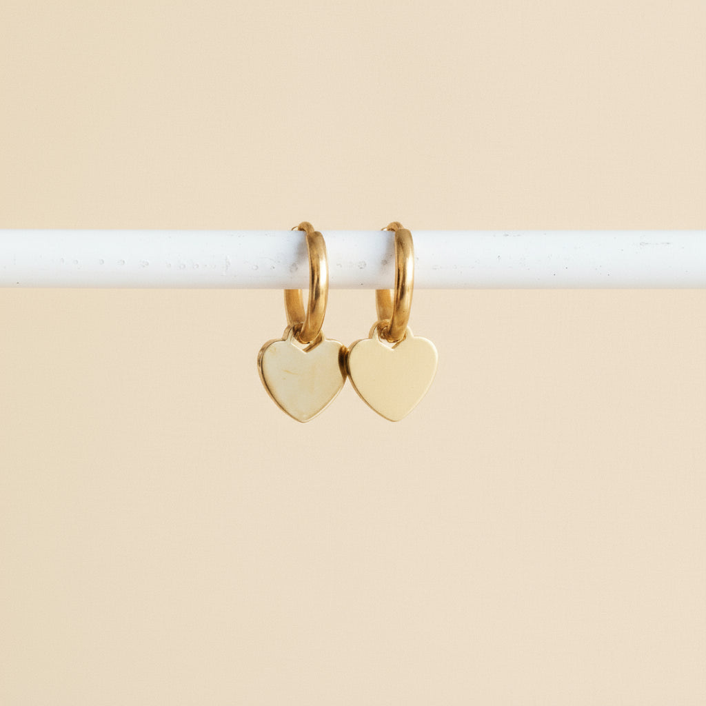 Fall head over heels for these adorable heart huggies! Crafted with 18k gold plating over stainless steel, they're built to keep their sparkle through coffee runs, gym sessions, and everything in between. These petite beauties are perfect for everyday wear—stack them, pair them, or let one steal the show. Lightweight, hypoallergenic, and designed to be your new favorite accessory that never loses its glow.