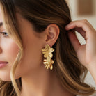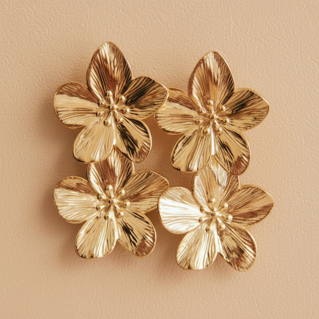 Turn heads with these audacious stacked flower dangles that refuse to blend in. Featuring two blooms layered for maximum drama, these oversized beauties are forged from 18k gold-plated stainless steel that keeps its radiant finish season after season. The playful design celebrates bold self-expression—ideal for anyone ready to let their jewelry do the talking. Light enough to wear all day, impactful enough to steal the spotlight.