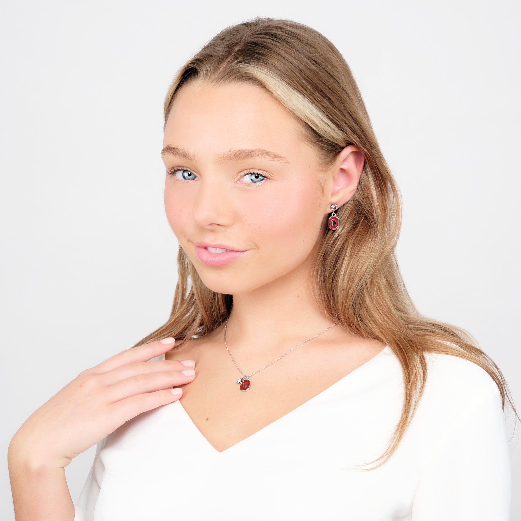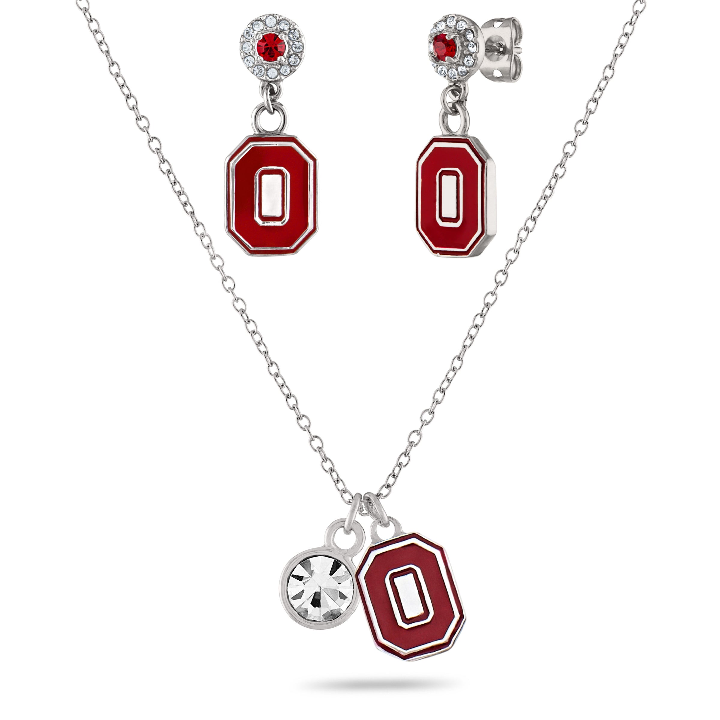 - YOUR PERFECT FIT: This Ohio State University jewelry set features crystal drop earrings and an adjustable necklace that fit most. Add this classic Ohio State earring and necklace set to your collection to show off your beloved Ohio State Buckeyes school and team! The Block O crystal drop earrings measure 9.3mm wide x 23.0mm long; the Block O crystal necklace is adjustable from 16-20 inches.🌰