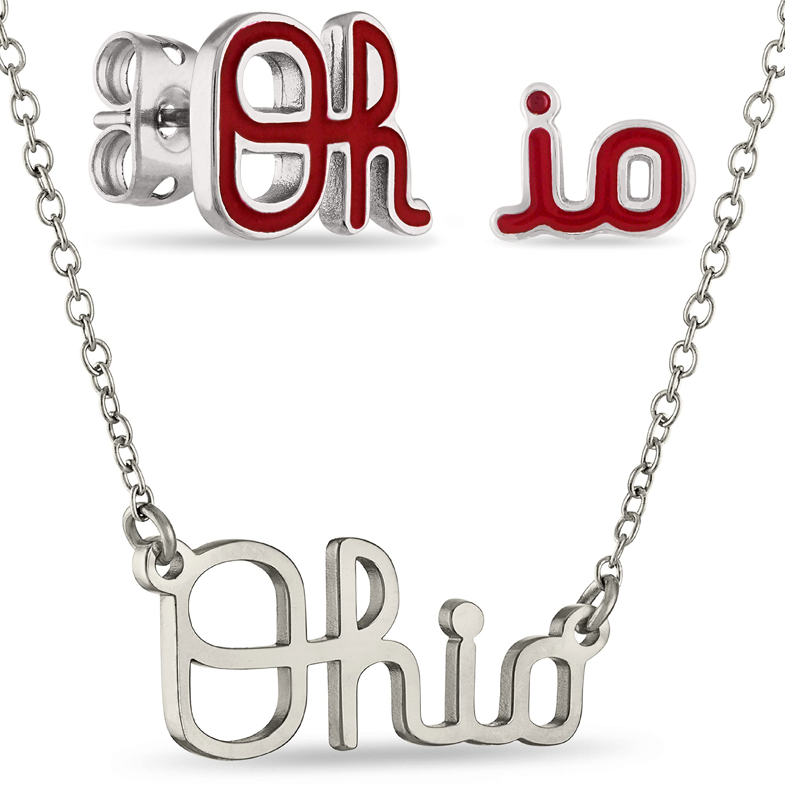 ❤️TREASURE YOUR Ohio State Buckeyes SPIRIT: This Stone Armory Ohio State Script OHIO jewelry set is officially licensed by the Ohio State University. Featuring scarlet Oh-io stud earrings and a classic Script Ohio necklace, this OSU jewelry set is full of Ohio State Buckeye pride!