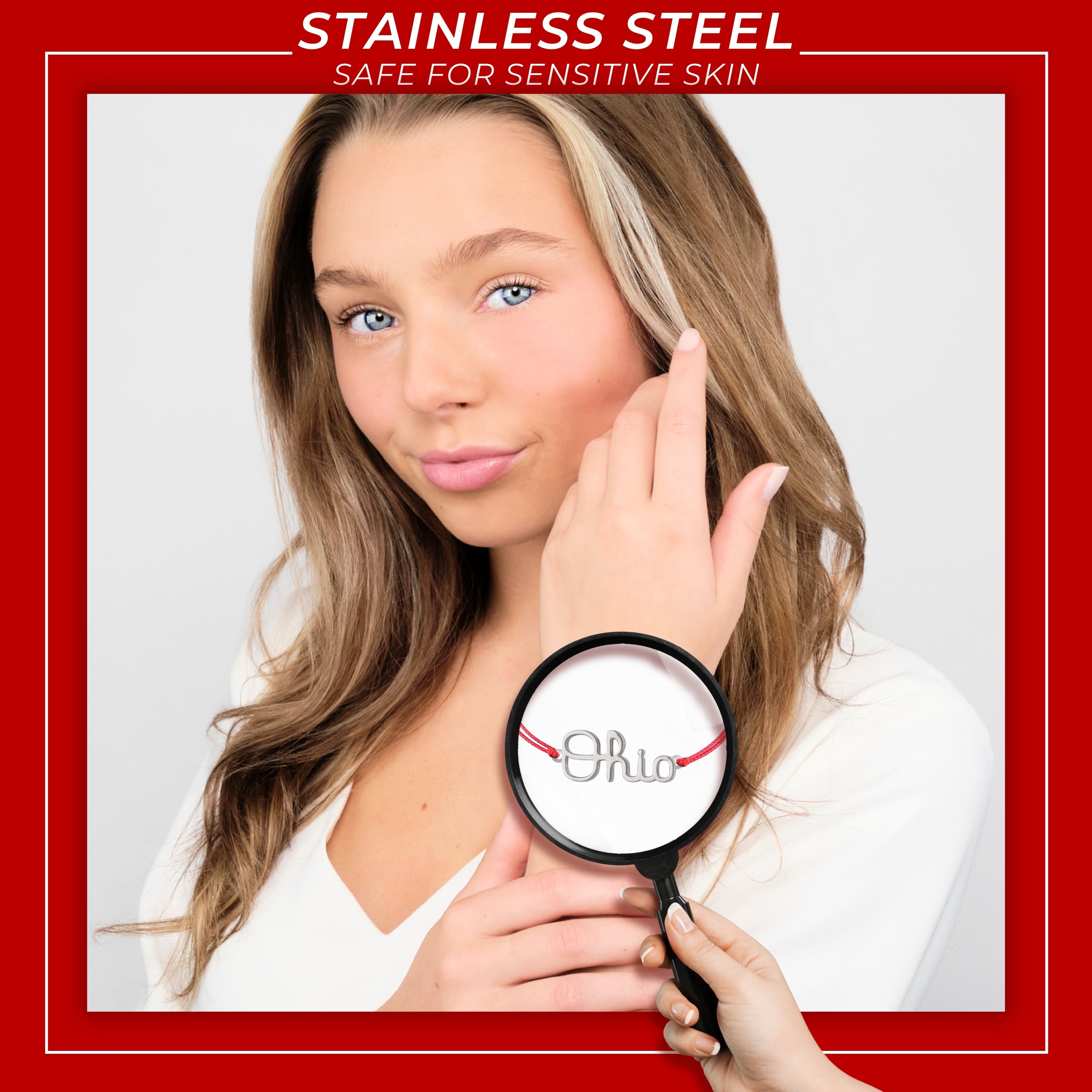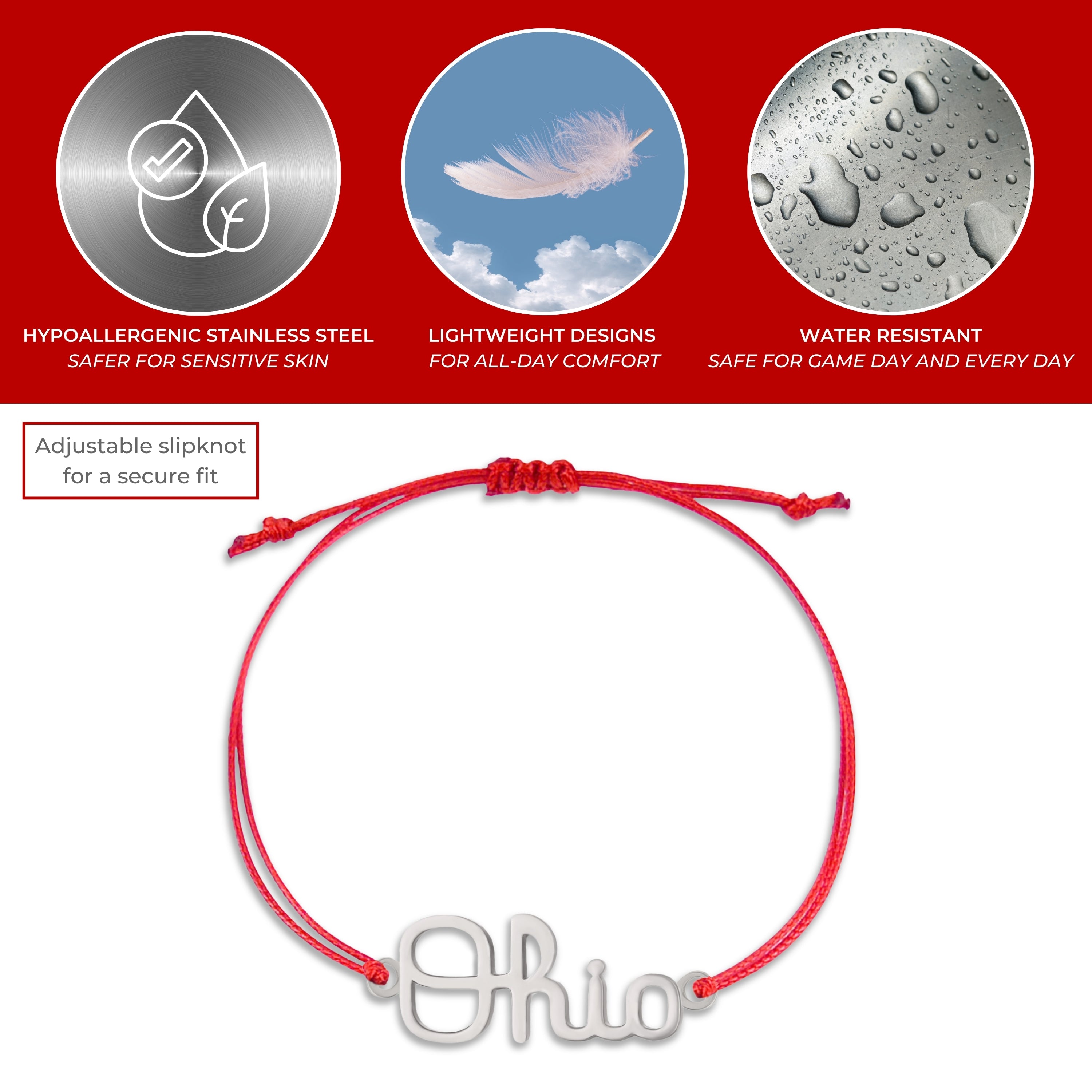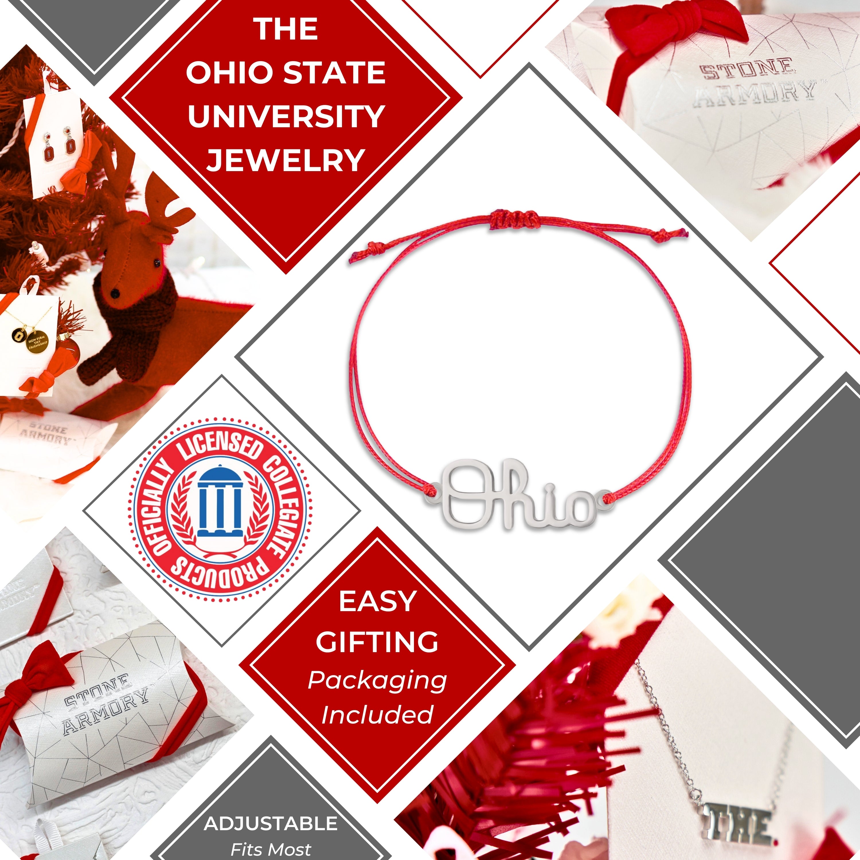 • Sport your Buckeye Spirit in Style with this Exquisitely Crafted Ohio State Bracelet : Treasure your Ohio State Buckeye Spirit with this Ohio State adjustable cord bracelet for women and men; this Ohio State University bracelet features a stainless steel script Ohio design on a scarlet cord bracelet