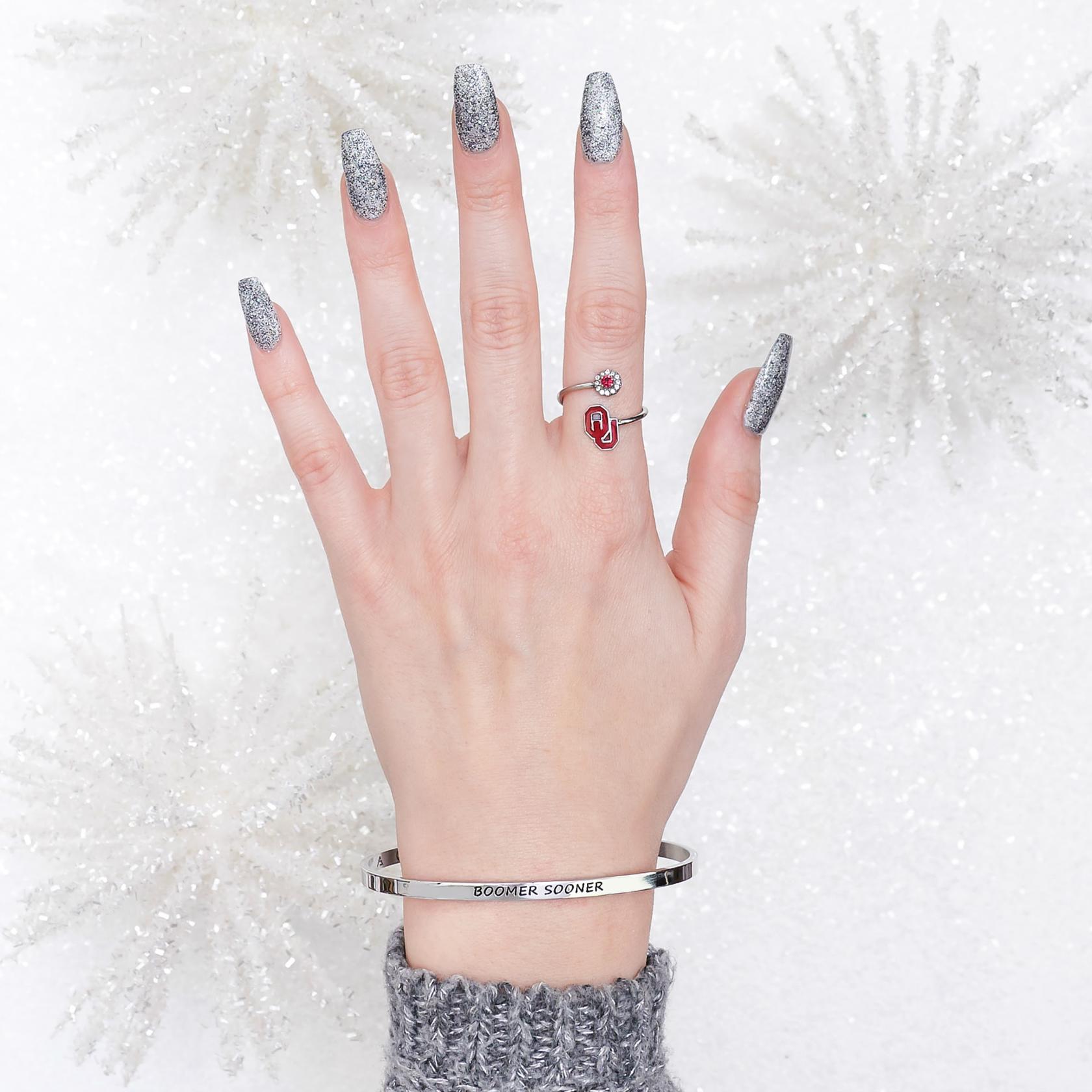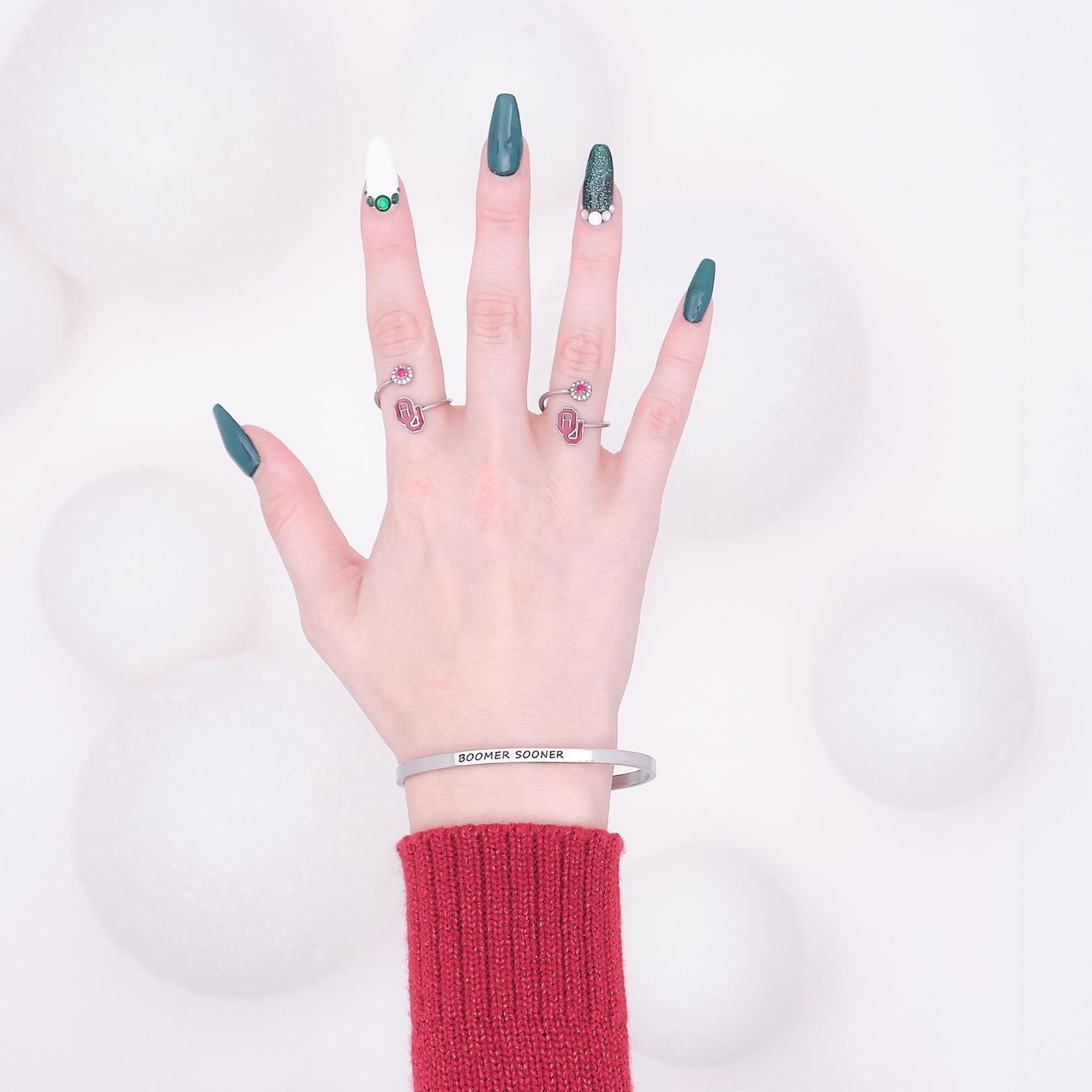❤️TREASURE YOUR Oklahoma Sooners SPIRIT: This Stone Armory University of Oklahoma bangle is officially licensed. This classic Oklahoma bangle bracelet is engraved with 'Boomer Sooner' to show off your OU Sooner pride.